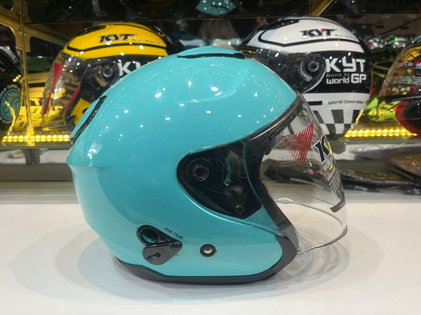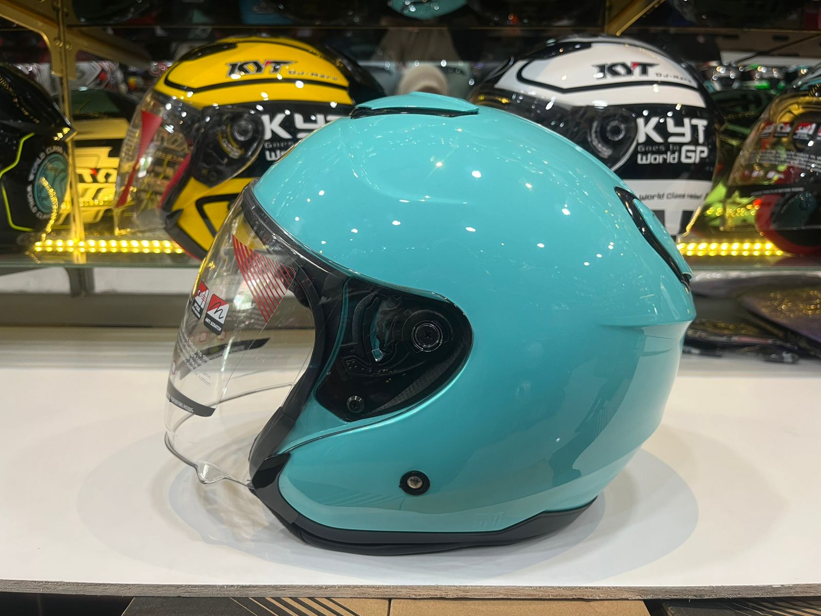 HELM KYT ORIGINAL HELM KYT KYOTO SOLID AQUA BLUE ORI HELMET HALF FACE KYT