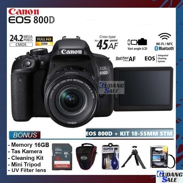 [NEW] KAMERA EOS CANON 800D + LENSA KIT 18-55mm IS STM WIFI - GARANSI 1 TAHUN - CAMERA VLOG M50 250D