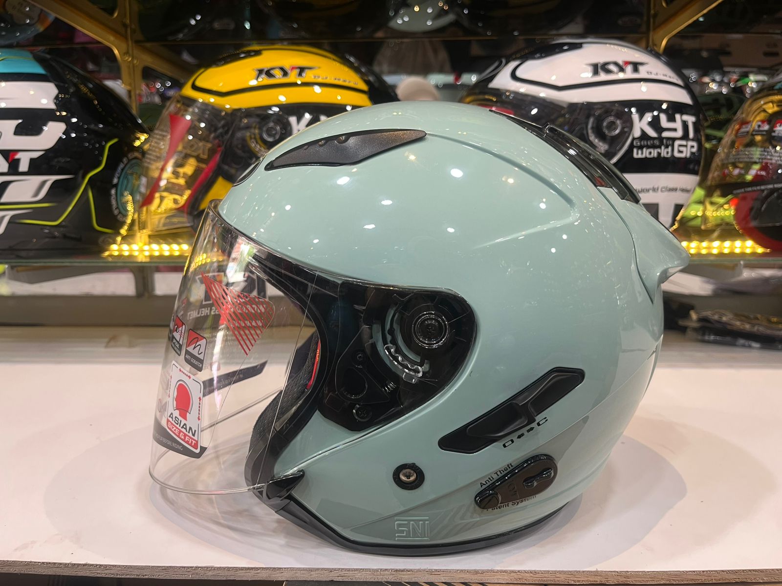 Helm kyt galaxy flat r solid SAGE GREEN ORI kyt half face HELM MOTOR