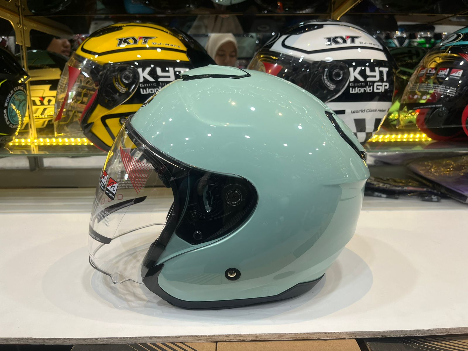 HELM KYT ORIGINAL HELM KYT KYOTO SOLID SAGE GREEN ORI HELMET HALF FACE KYT