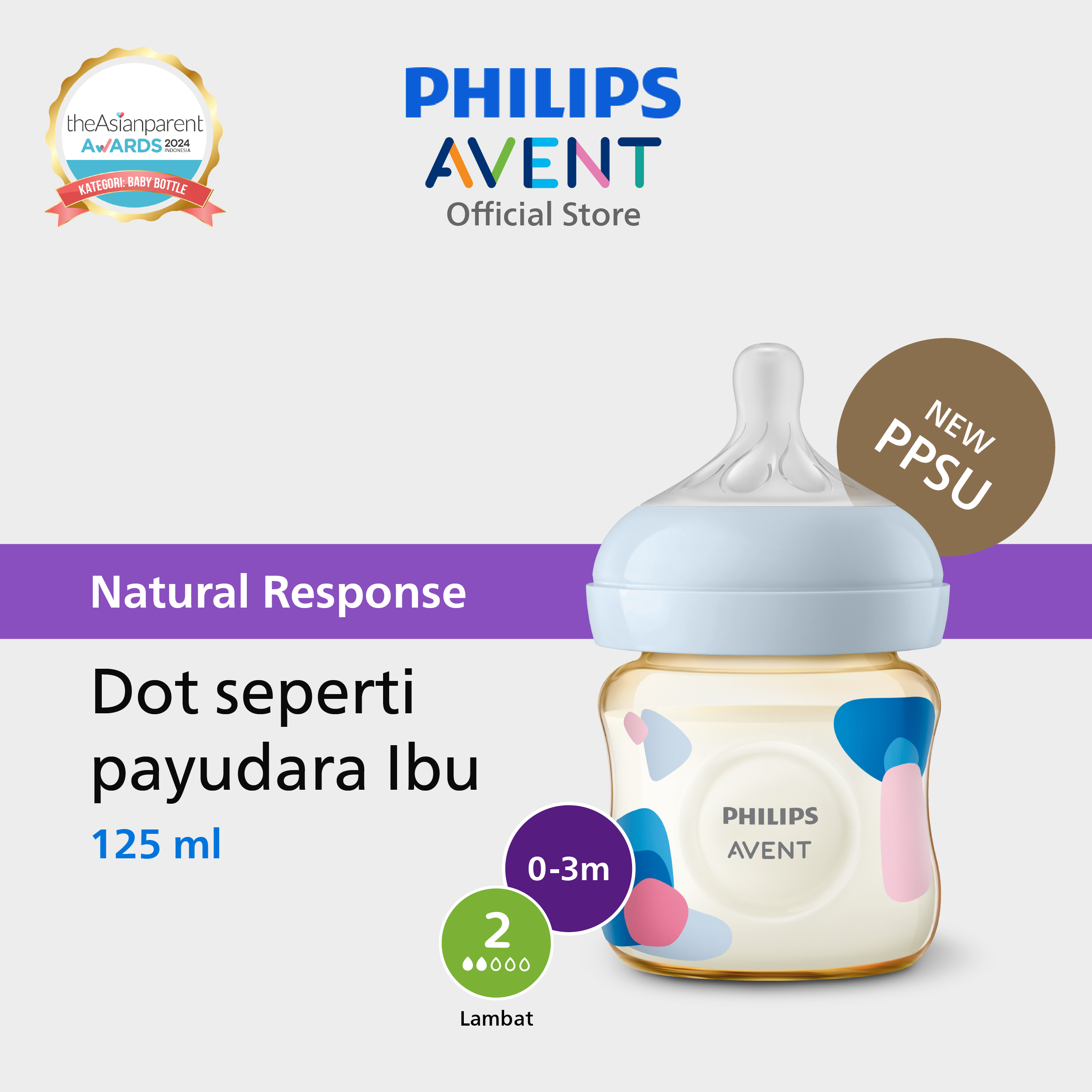 Philips Avent | Botol Susu Bayi | PPSU Natural Response | Dot Seperti Ibu & Tahan Hingga 180 C | 125 ml | Single | SCY9