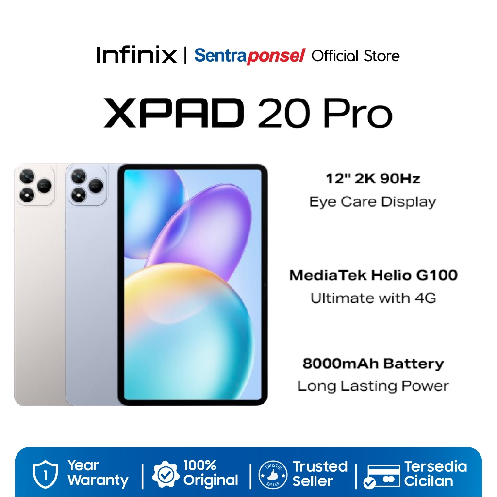 Infinix XPAD 20 Pro 8GB/256GB - Mediatek G100 Ultimate - 12" 2K 90Hz - 8000 mAh - 4G LTE - Garansi Resmi