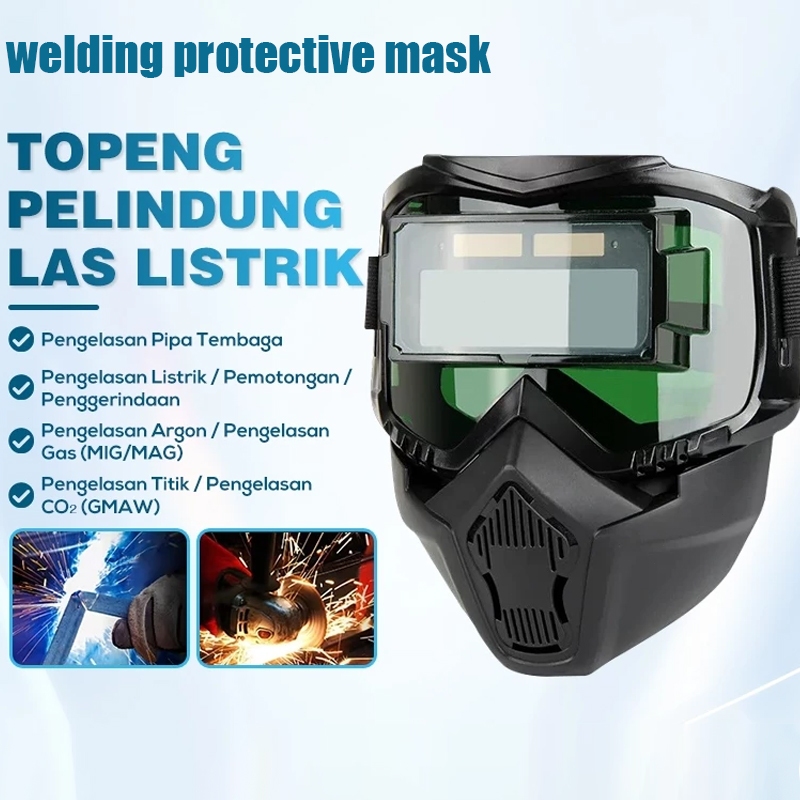 Helm Las gelap Pelindung wajah bisa dilepas terang Dimming True Color Welding Mask Kacamata Topeng las listrik full waja