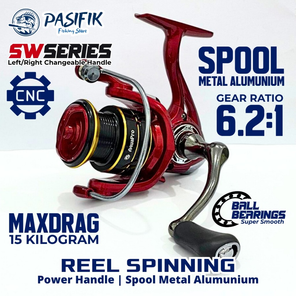 Reel Pancing Fishing Reel Spinning SW Series 10+1 Ball Bearing Spool Aluminium Gear Ratio 6.2:1 Power Handle Stainless S
