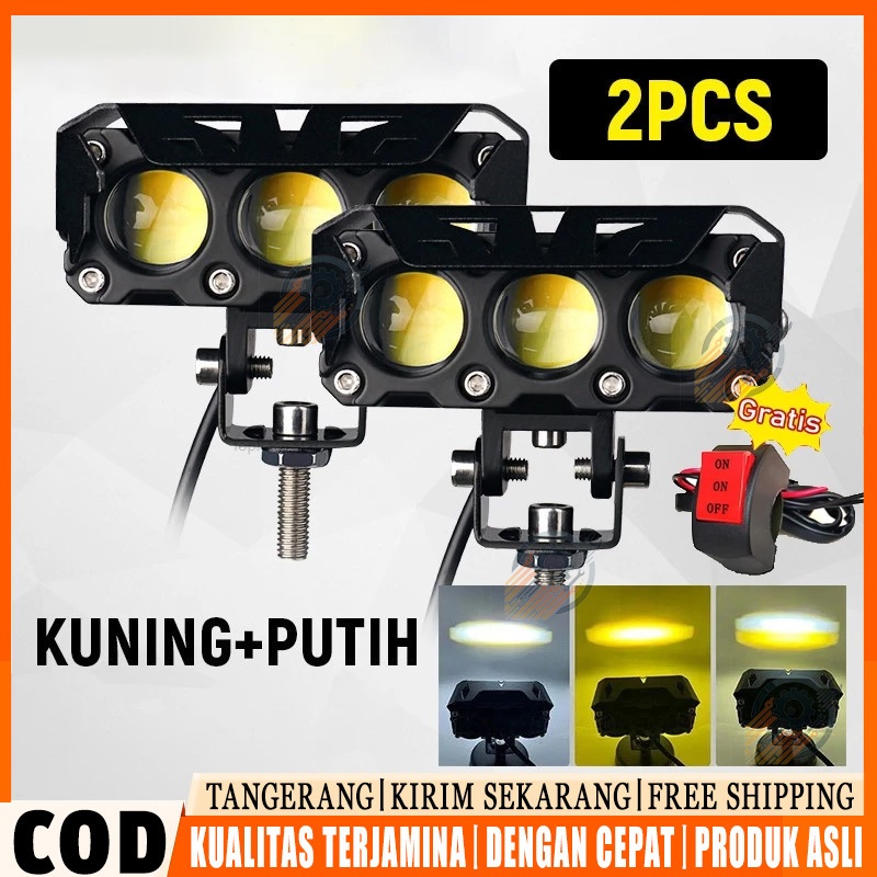 60w LAMPU TEMBAK SQL 3 MATA LASER GUN PUTIH - KUNING 12volt-24 VOLT MOBIL TRUCK FUSO TRONTON AVANZA JAZZ xenia, calya