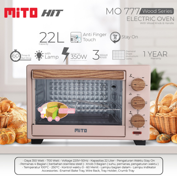 Mito Oven Listrik MO 777 22 Liter Low Watt Electric Oven Wood Handle Open Mitochiba MO777 Kenop Kayu