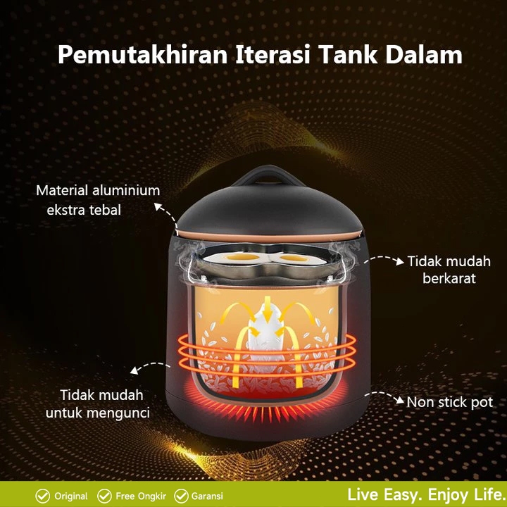 rice cooker mini/panci anti lengket penanak nasi/penanak nasi multifungsi 1,2L magiccom kecil low watt steamer