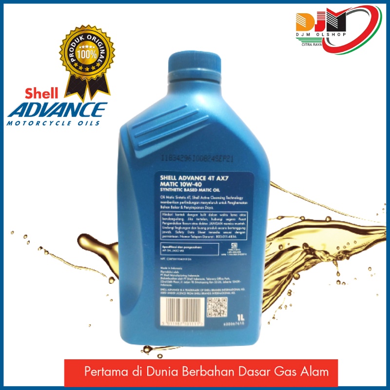 Oil Shell Advance AX7 4T synthetic based motorcycle oil 10W40 1L Original