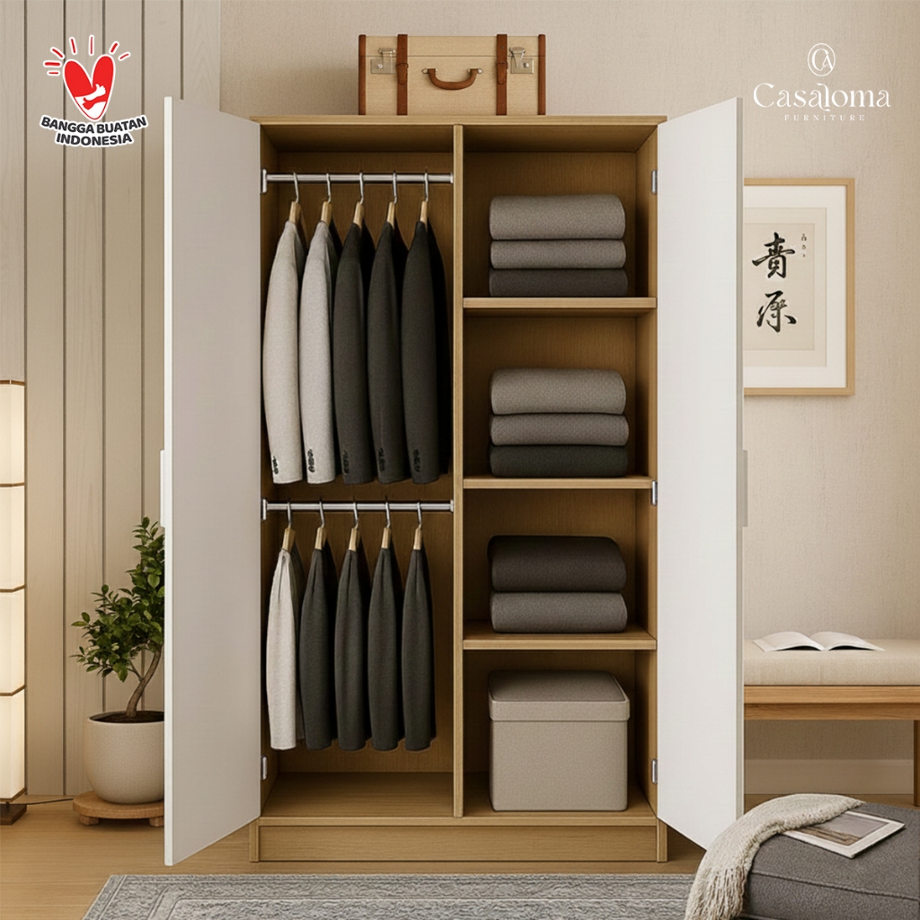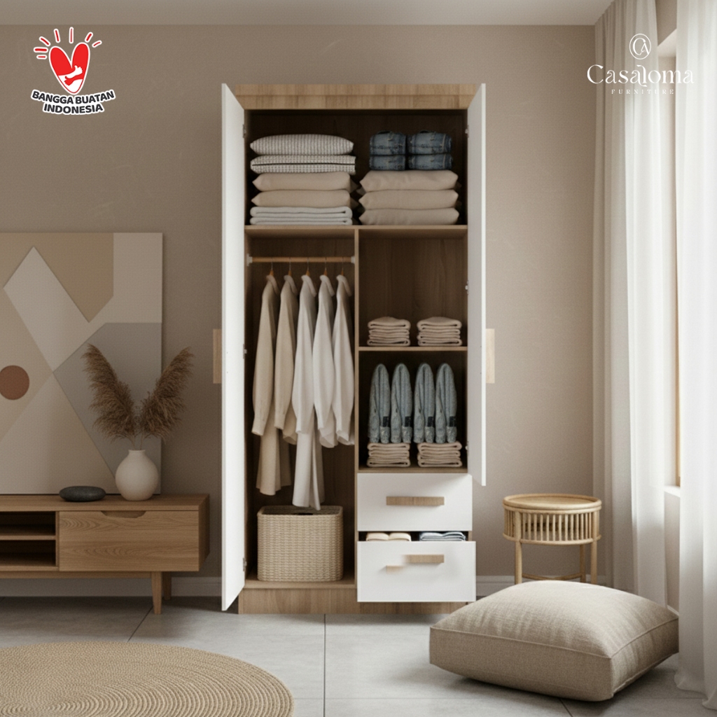 Casaloma Furniture Lemari Pakaian 2 Pintu Minimalis Paket Meja Rias Elegan Moderen