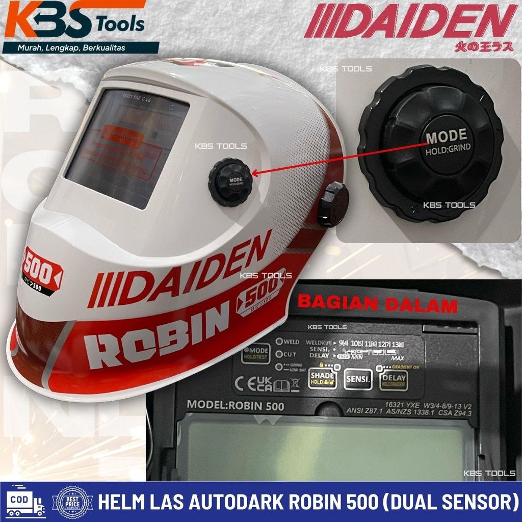 Helm Las DAIDEN ROBIN 500 Auto Darkening Helmet Kedok Las Sensor Gelap Otomatis Auto Dark