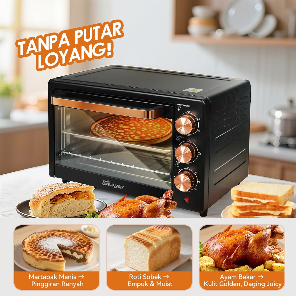Saluyar Oven Listrik Jepang 12L/22L/33L – Kontrol Suhu Atas Bawah Terpisah Panggang Roti, Ayam, Bebek, Multi Tray