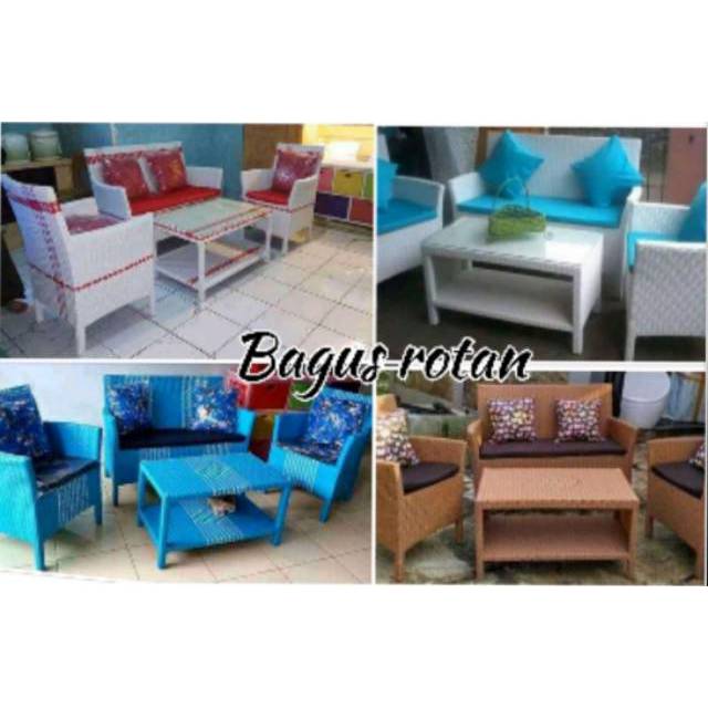 (Ready stok) Kursi tamu hawai rotan sintetis + kaca kursi taman kursi santai sofa minimalis