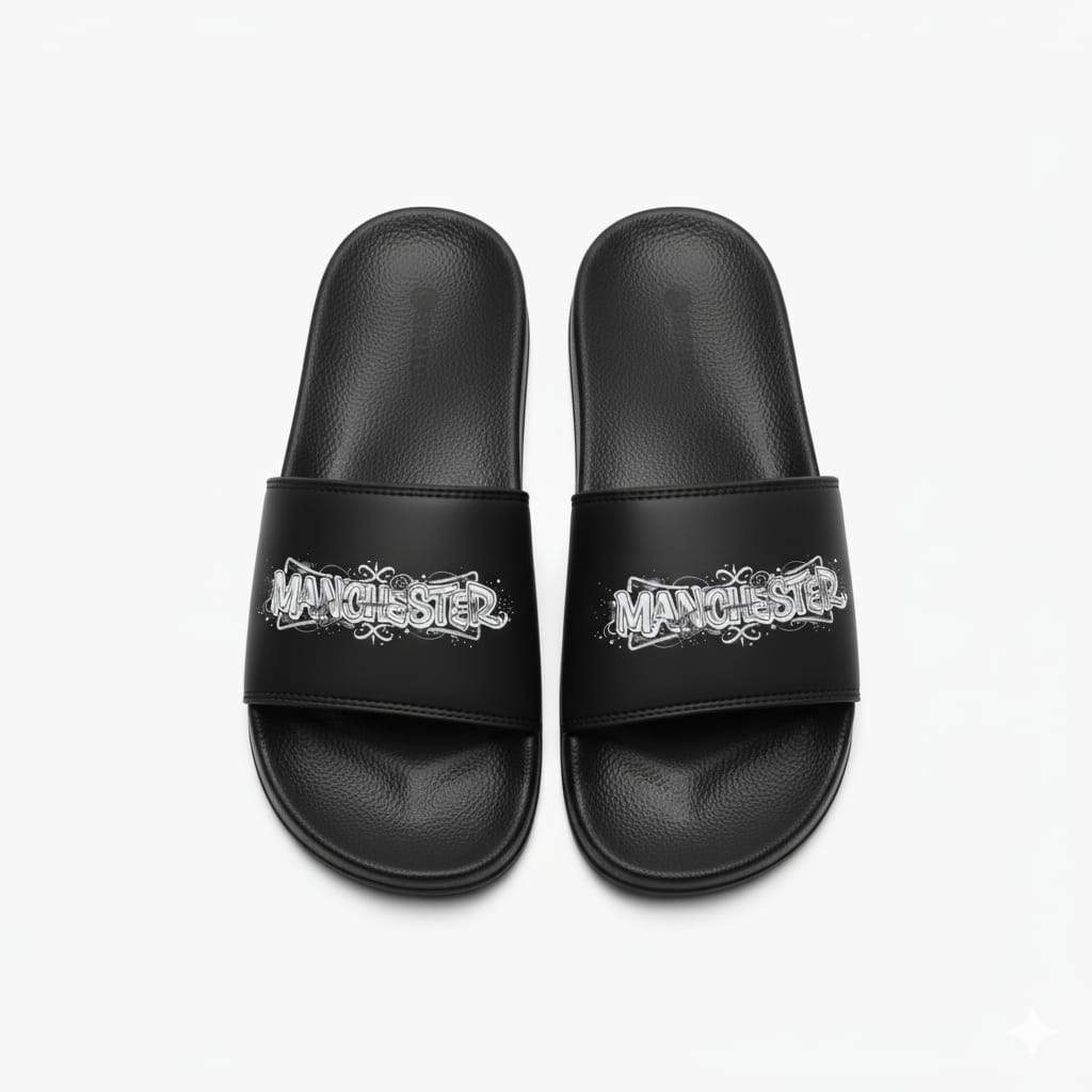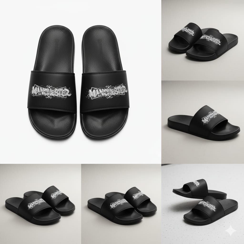 Sandal Slide hitam Unisex – Anti Slip, Ringan & Desain MANCHESTER