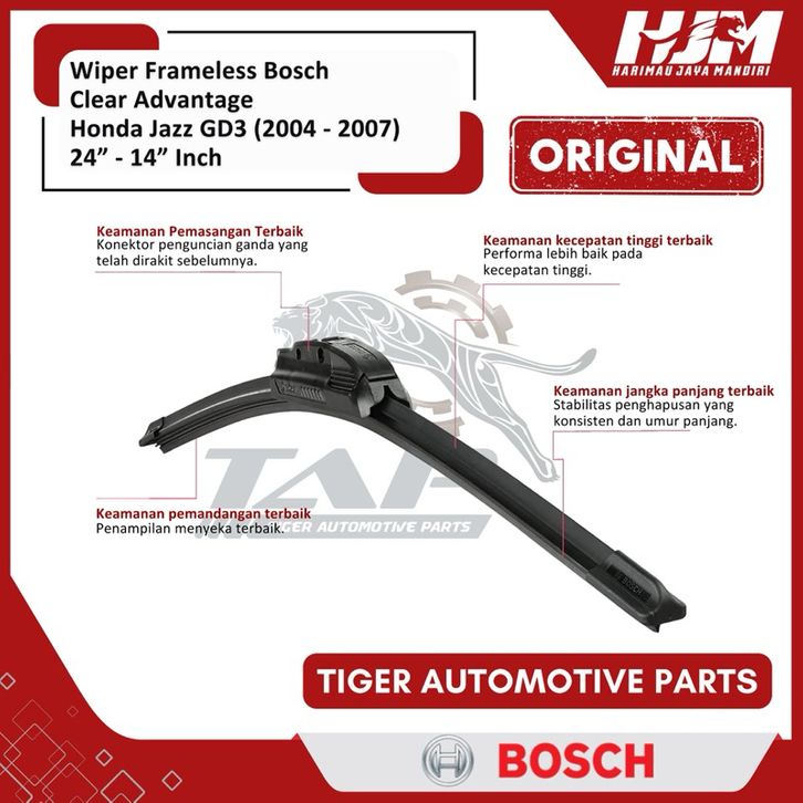 Wiper Blade Frameless Bosch Clear Advantage - Karet Pembersih Kaca Depan Jazz GD3 24" - 14" Original