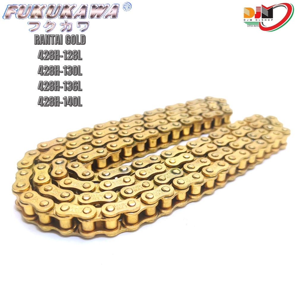 Rantai Motor Emas Gold Kuning 428H-128L-130L-136L-140L Japan OEM Fukukawa