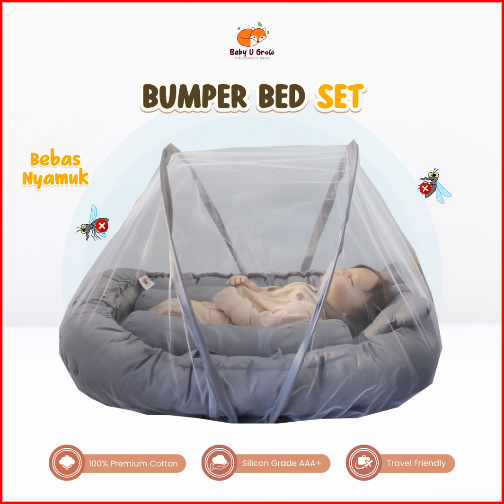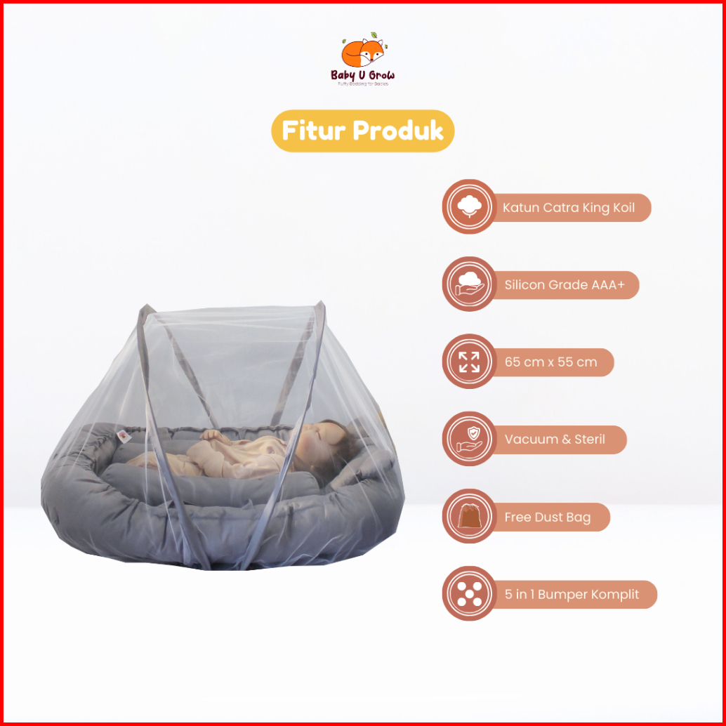 Baby U Grow - Kasur Bayi Kelambu Lipat Bumper Bed Set - Katun Catra Kingkoil