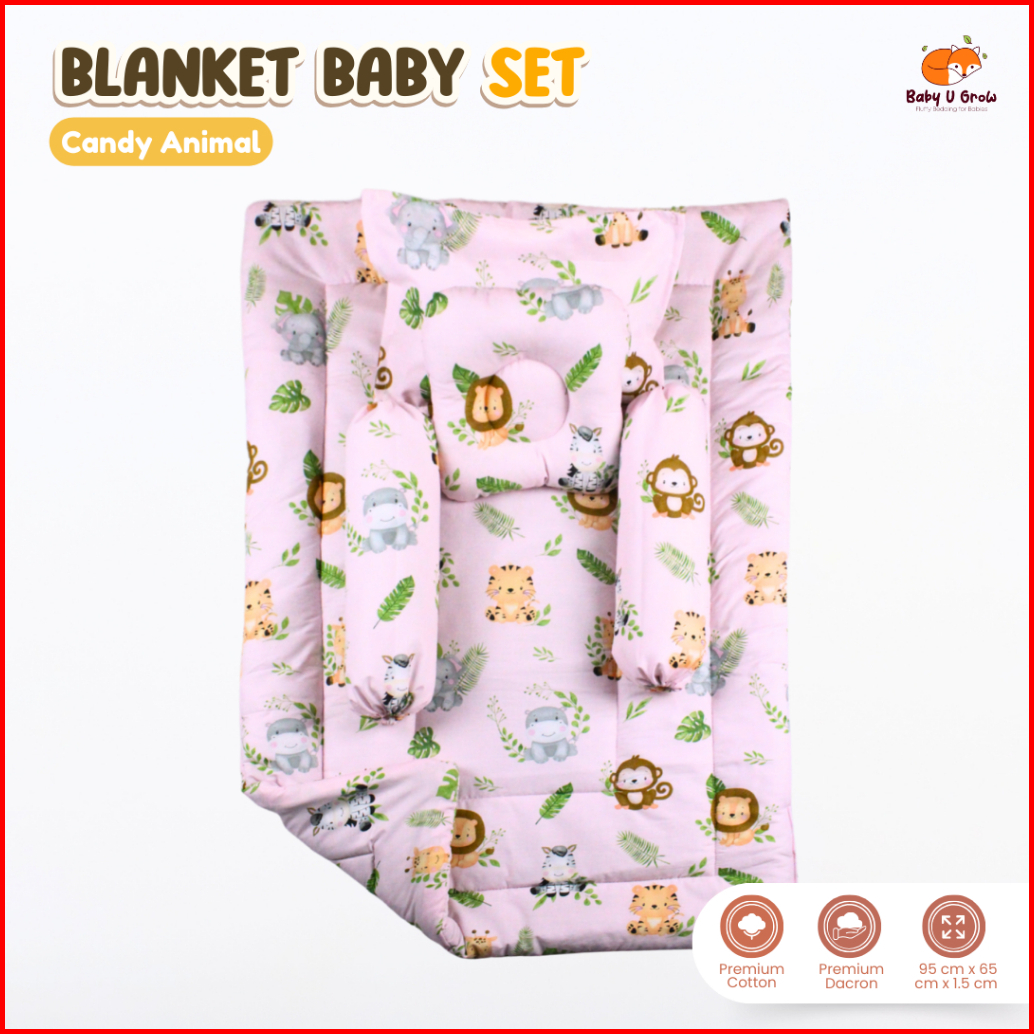 Baby U Grow - Blanket Baby Set Bantal Peyang Guling Bedcover Bayi - Katun Catra