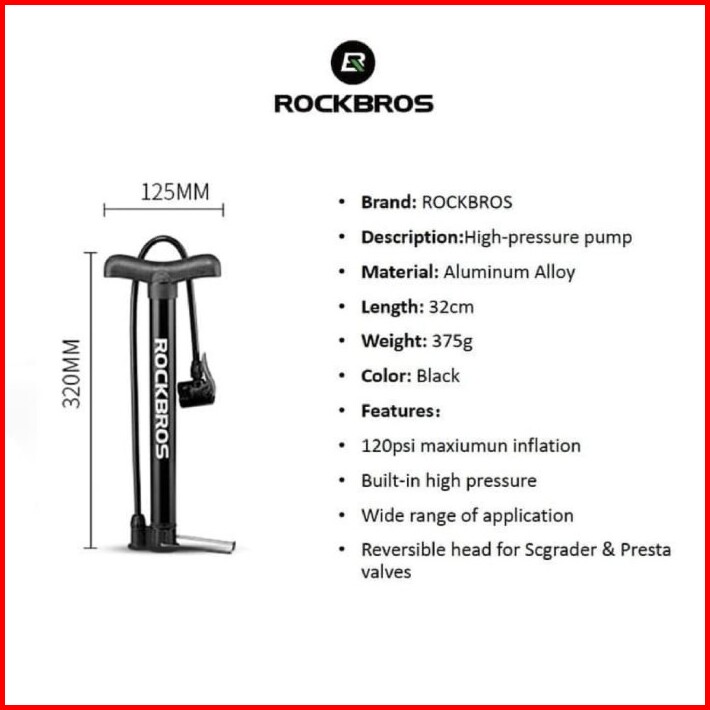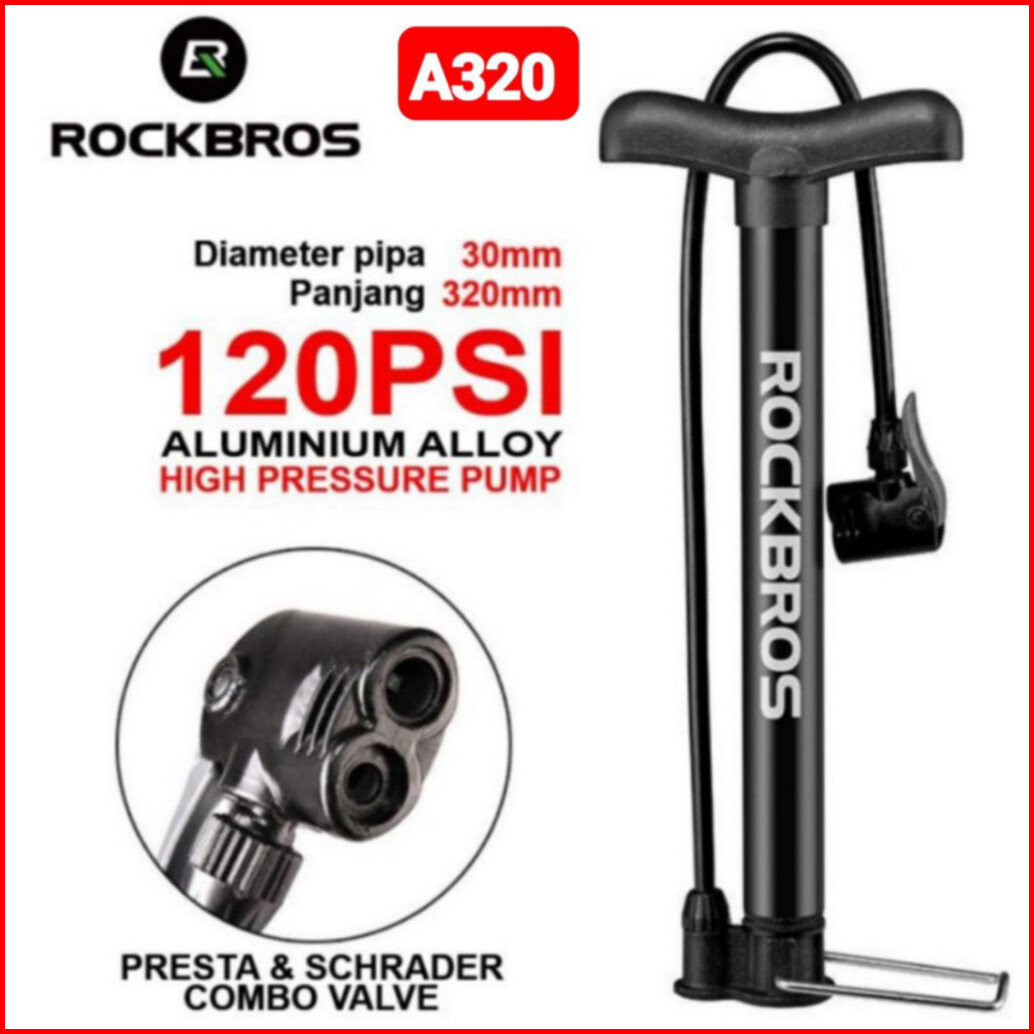 Rockbros Pompa Sepeda 120 Psi A320 Bicycle Pump Bola Motor Pentil Presta Schrader Aluminium Alloy