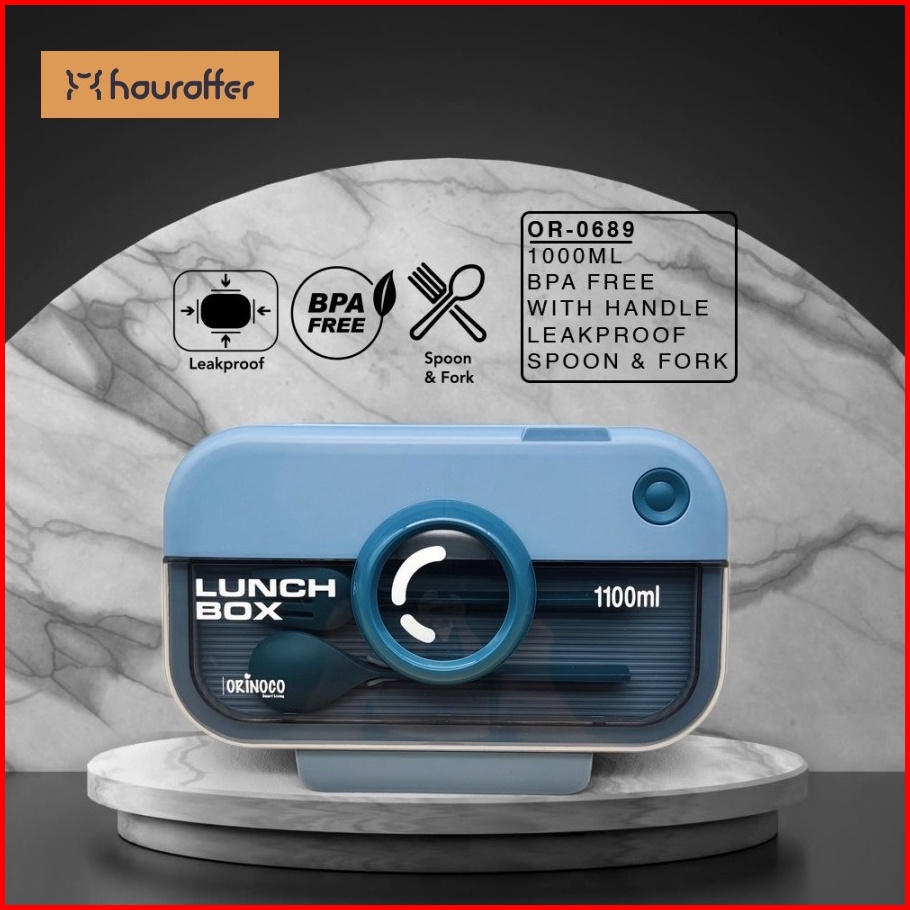 Kotak Makan Or-0689 Lunchbox 2 Sekat Free Sendok Garpu 1000ml Model Camera