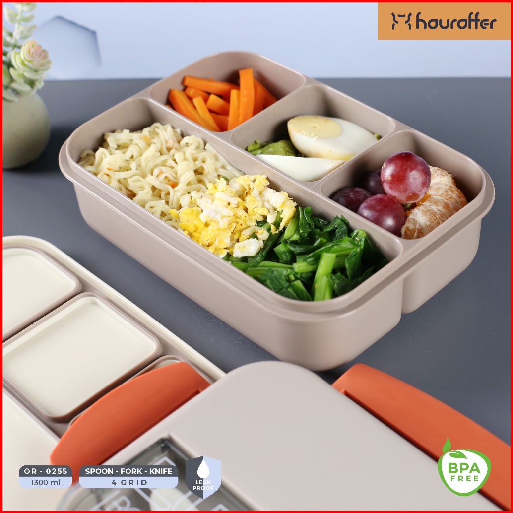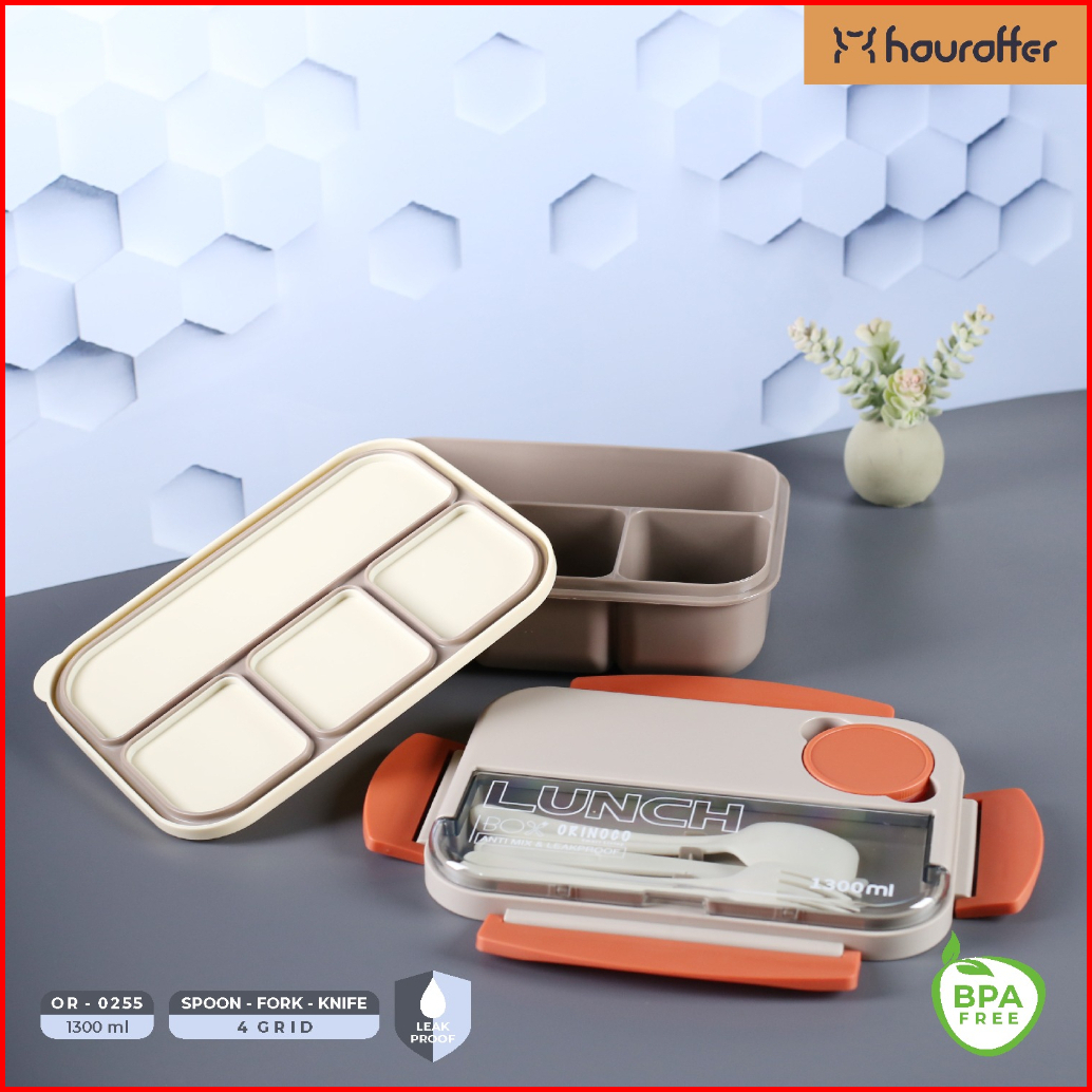 Lunchbox 4 Sekat Or-0255 Kotak Makan Anti Tumpah Bpa Free 1300ml