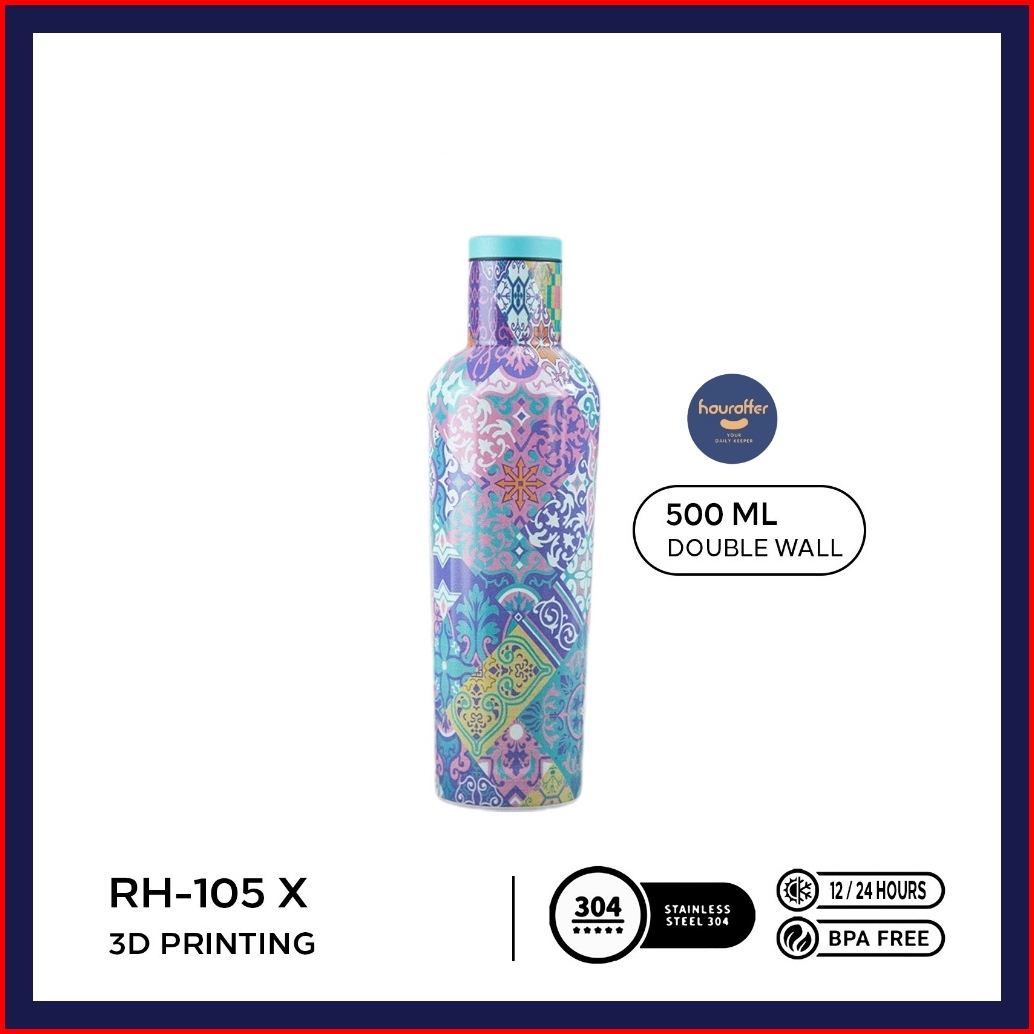 Tumbler Stainless Motif Batik 500ml Botol Minum Termos Rh-105 Coating 3d Printing Hot Cold