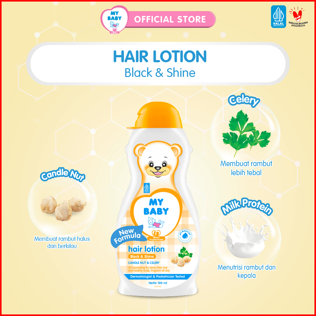 My Baby Hair Lotion Black Shine 100 Ml 2 Pcs - Losion Pelebat Penyubur Rambut Bayi Agar Hitam Berkilau - Exp 08.2026