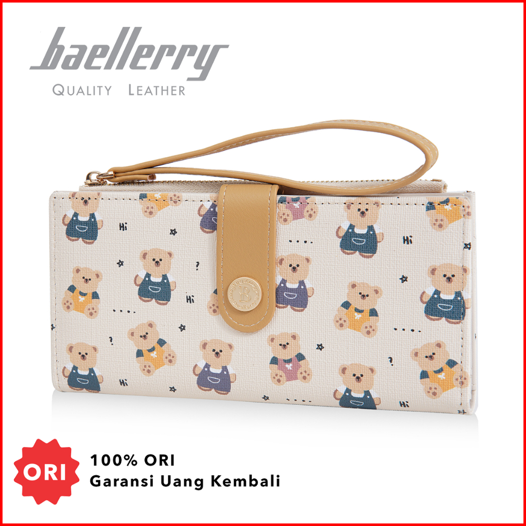 Baellerry N5588 Dompet Wanita Panjang Motif Teddy Bear Bahan Kulit Pu Leather Premium Baeos