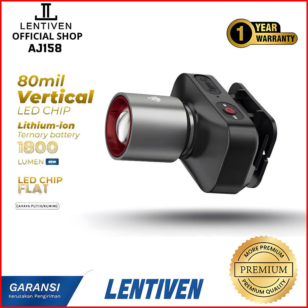 Lentiven Senter Kepala Cahaya 80w Led Fokus Penyebaran Zoom 800 1000 1200 Lumen 3 Mode Cahaya Dengan Aj158