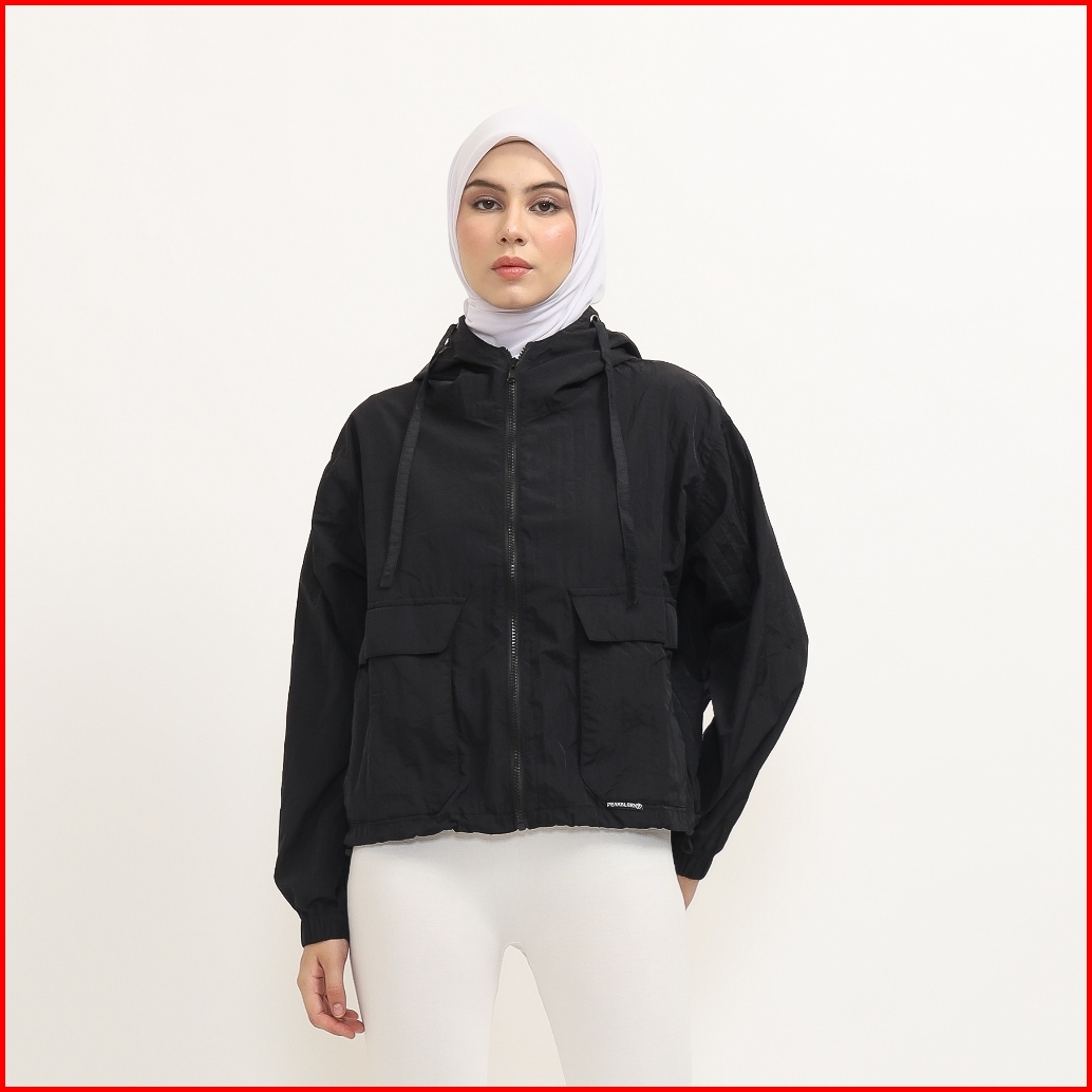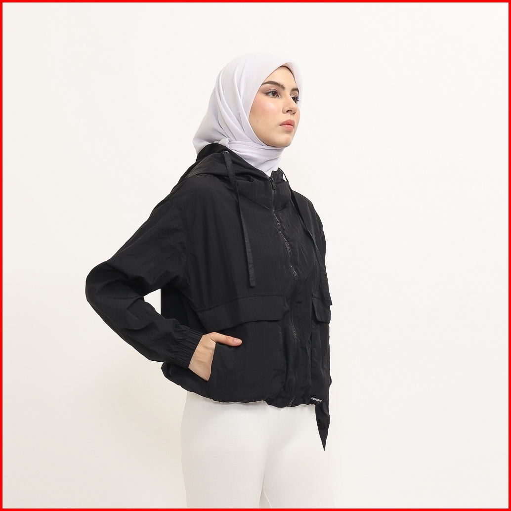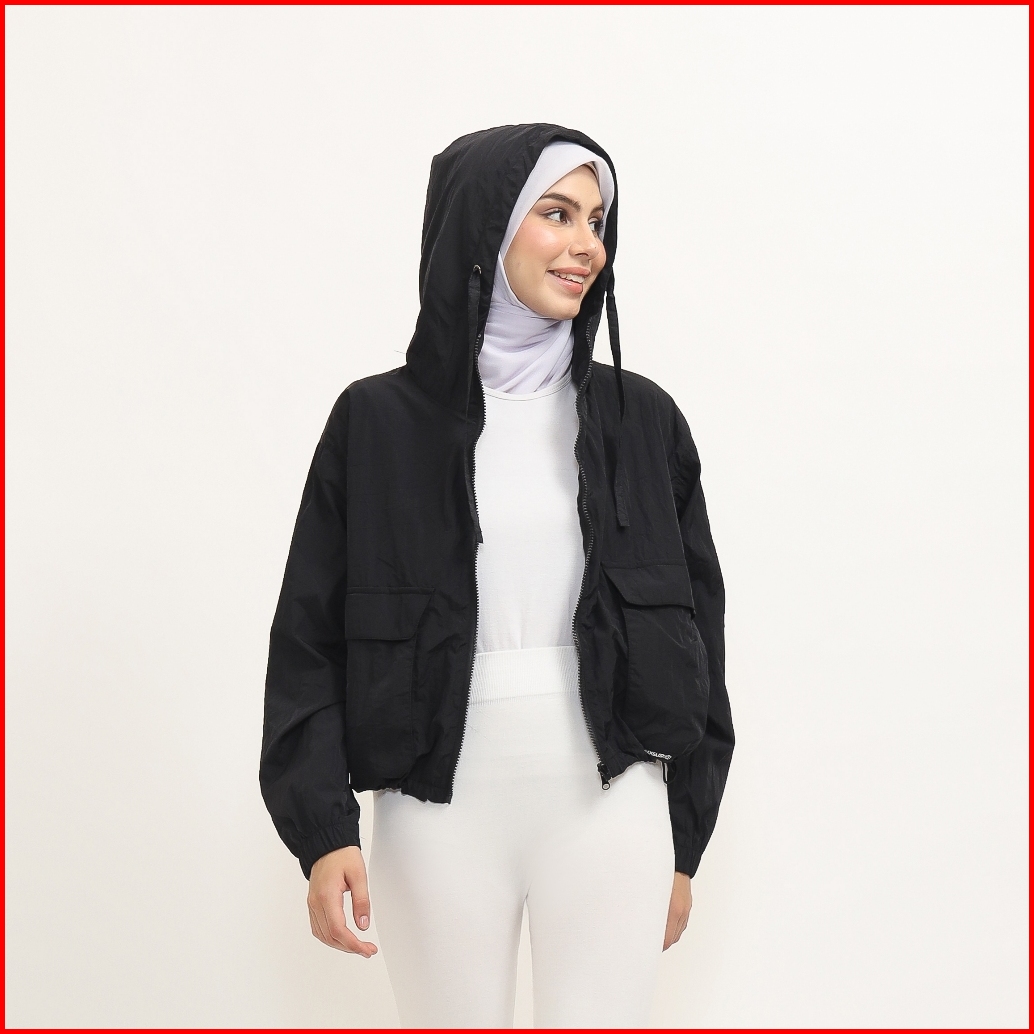 Jacket Parasut Crinkle Wanita Jaket Crop Windbreaker Olahraga Hoodie Hijab Friendly Sporty Outdoor Anti Uv Lari Gym