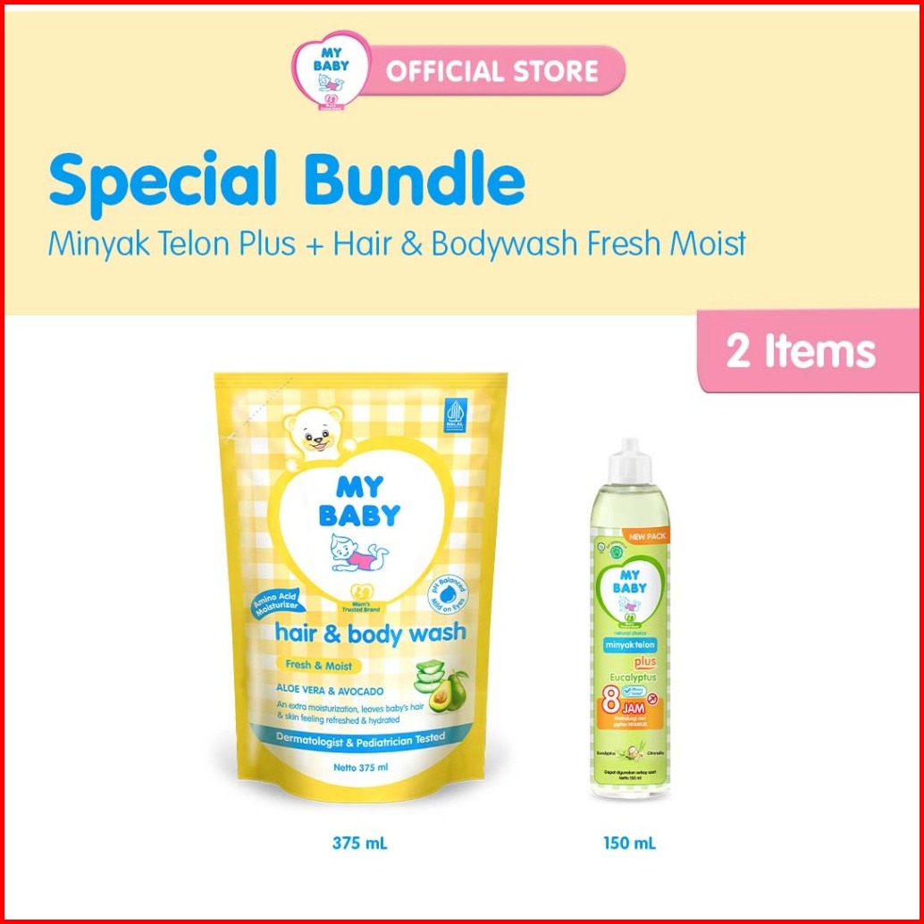 My Baby Minyak Telon Plus 150ml Hair Bodywash Aloevera Avocado 375ml - Bundle Package
