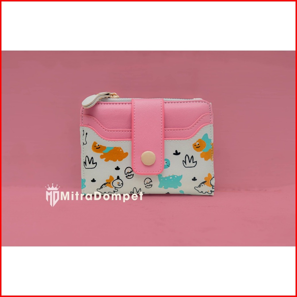 Dompet Motif Dino-dompet Kartu Dompet Wanita Dompet Lipat Mini Dompet Uang Koin Terbaru