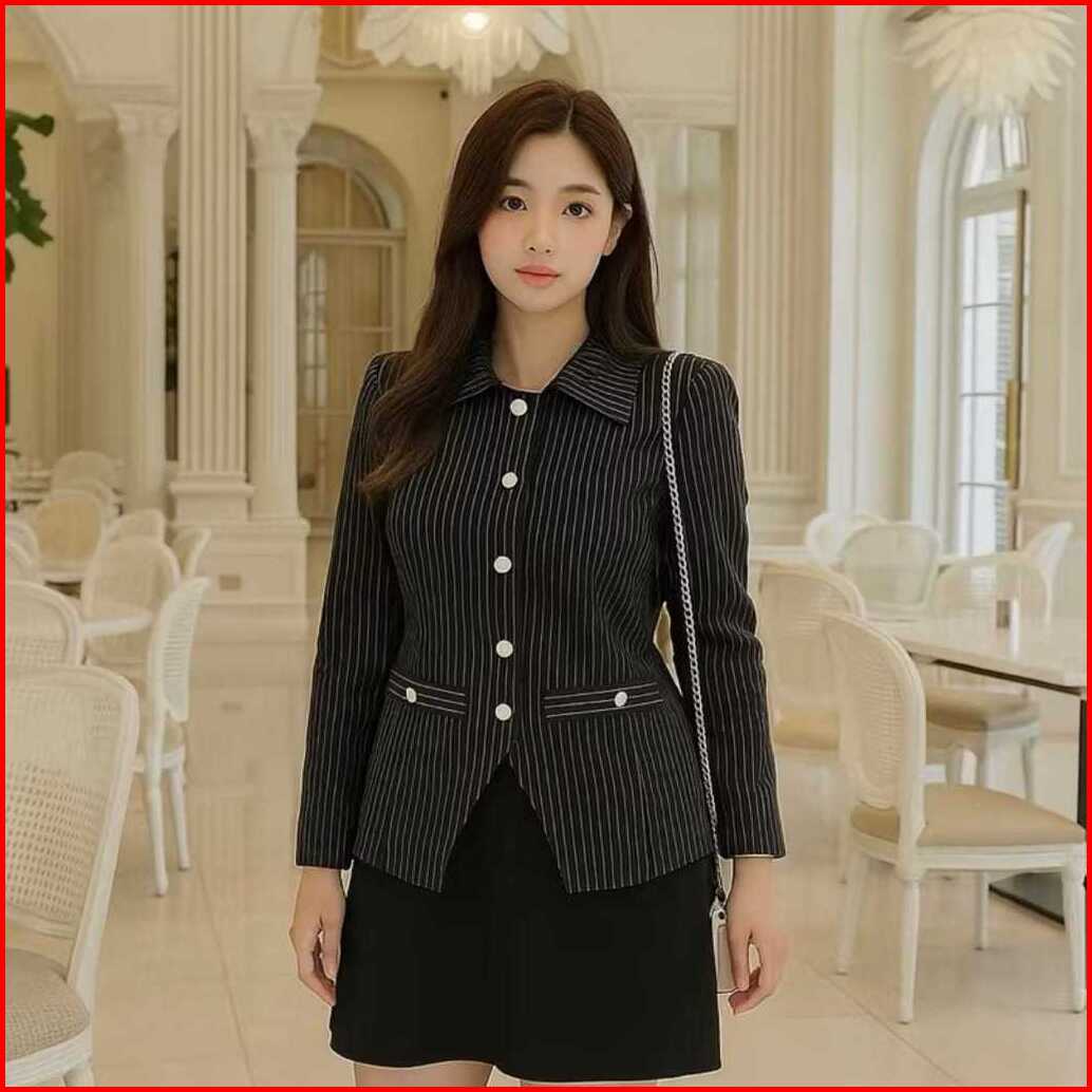 Luna Blazer Stripe Salur Atasan Blazer Wanita Kerja Blouse Slimfit