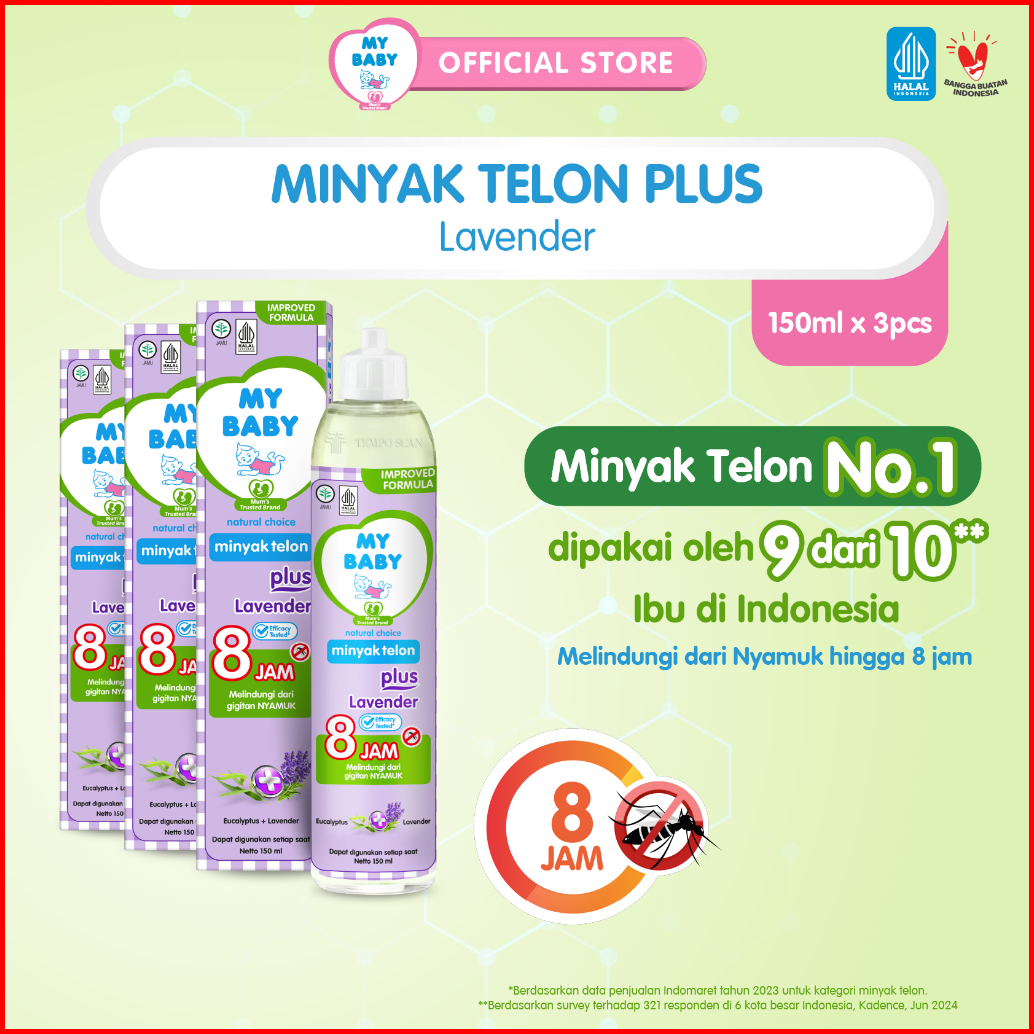 My Baby Minyak Telon Plus Lavender 150 Ml 3 Pcs - Minyak Anti Nyamuk 8 Jam - Exp 07.2027