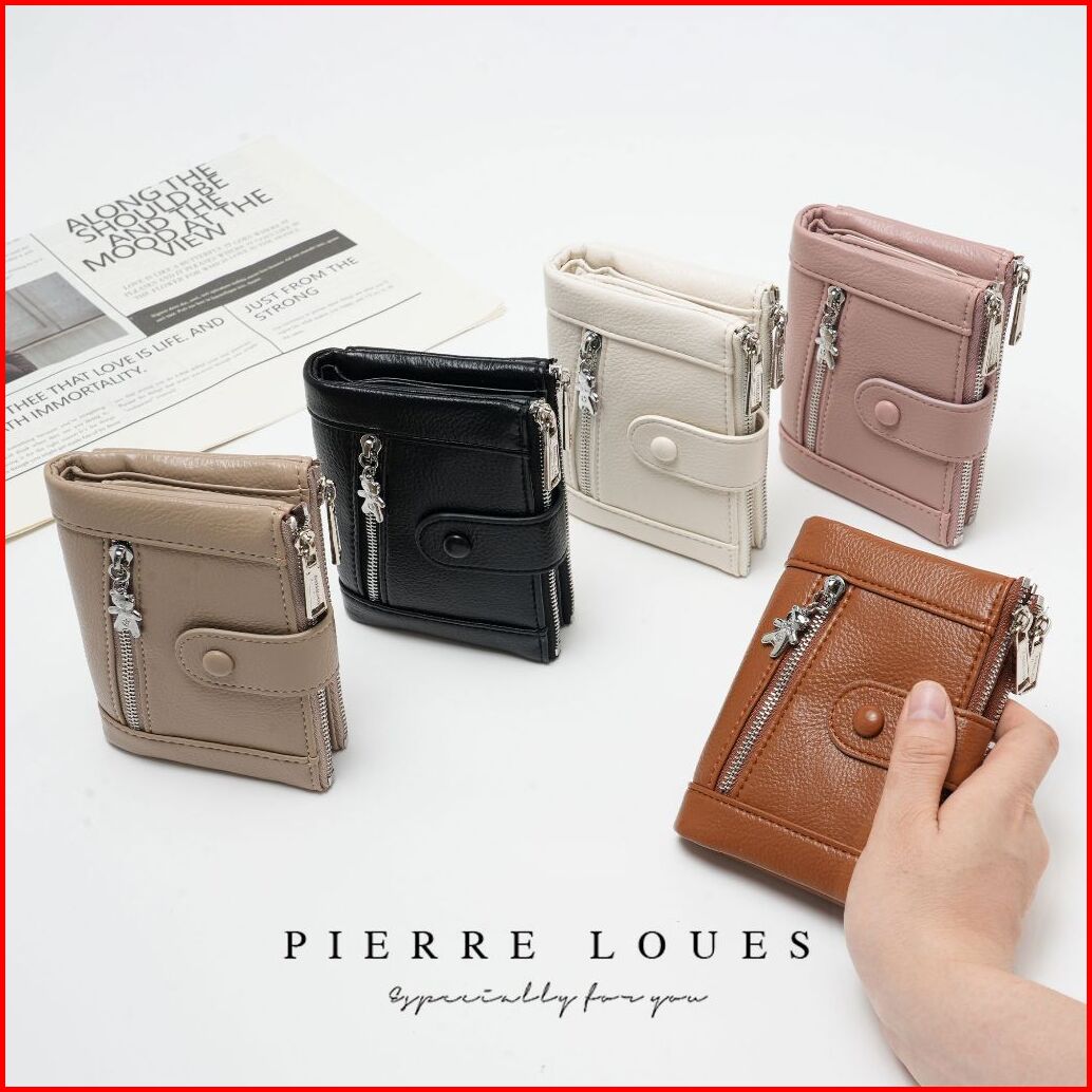 Dompet Wanita Lipat Pendek Pierre Loues Zella Wallet Bahan Kulit Pu Leather Premium Baeos