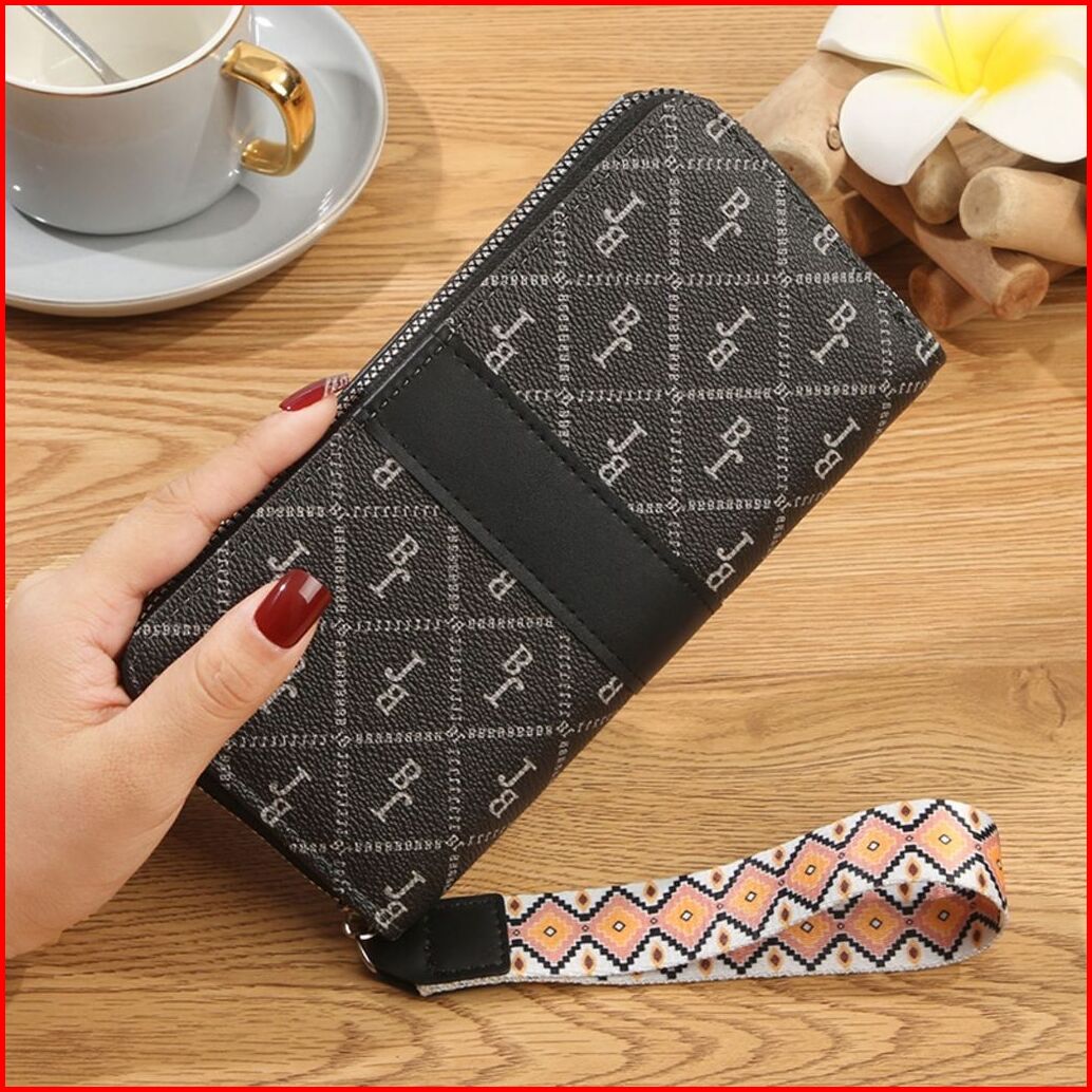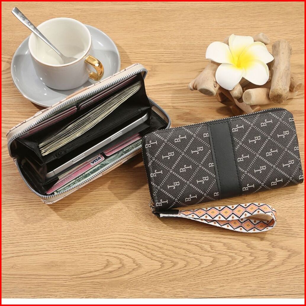 Dompet Panjang Wanita Evelyn Wa1225b5 Hitam Motif Elegan Kulit 2 Resleting Premium Slot Lengkap