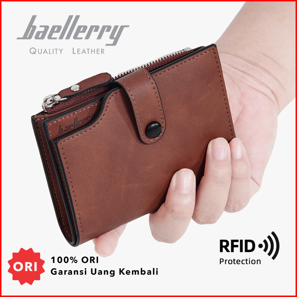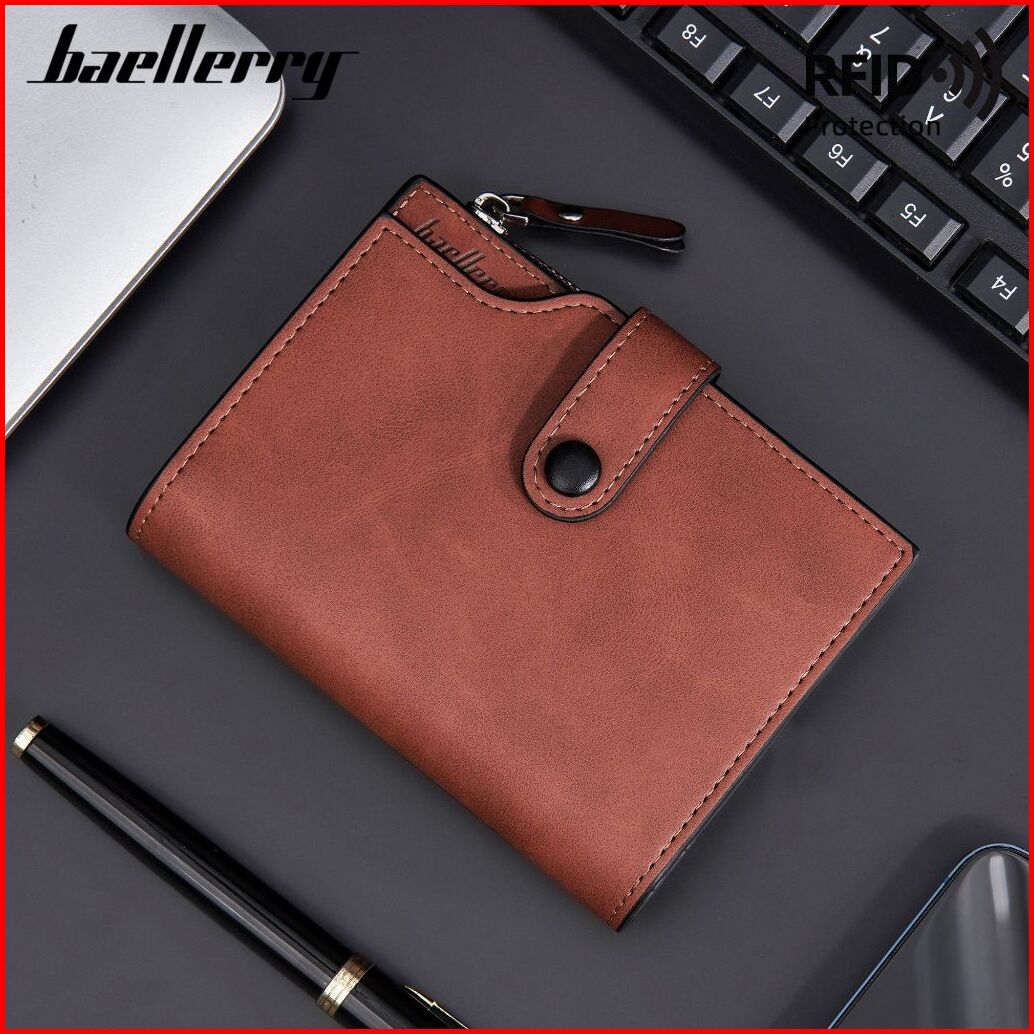 Baellerry D5113 Dompet Pria Lipat Rfid Protect Bahan Kulit Pu Leather Premium Baeos
