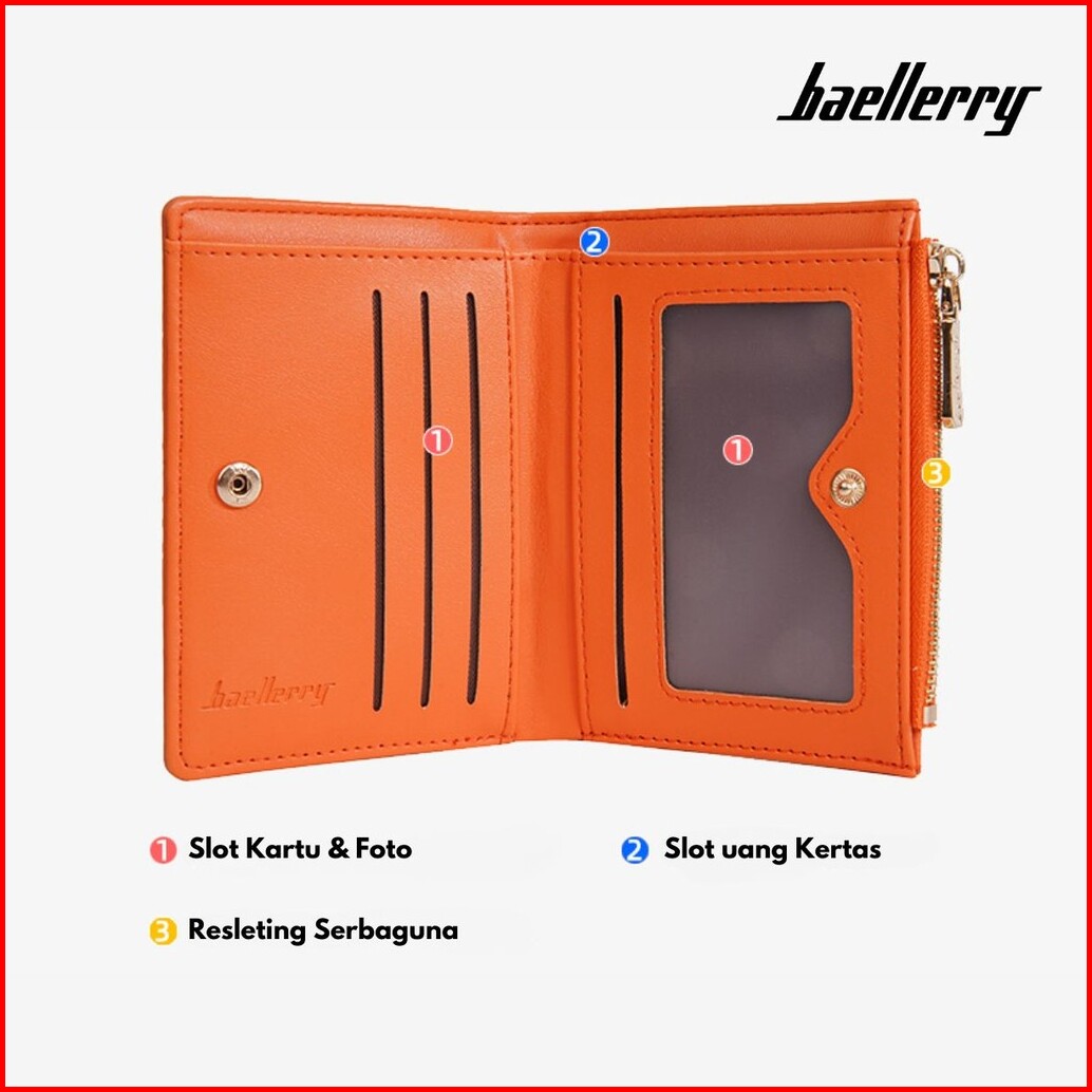 Dompet Lipat Wanita Cheva Wa1066o3 Orange Kulit Mini Resleting Slot Kartu Atm Branded Premium Cantik