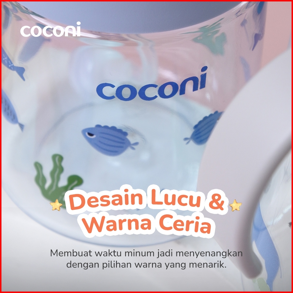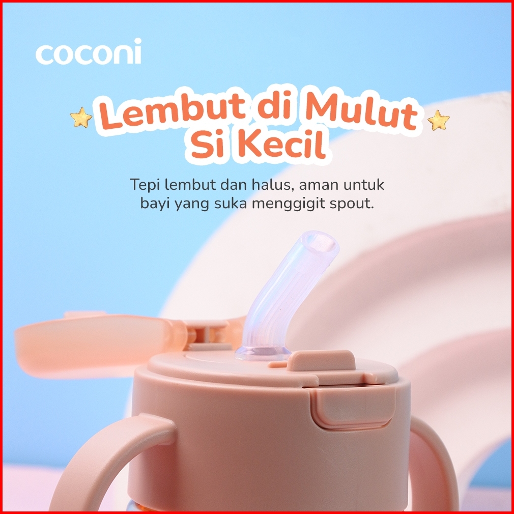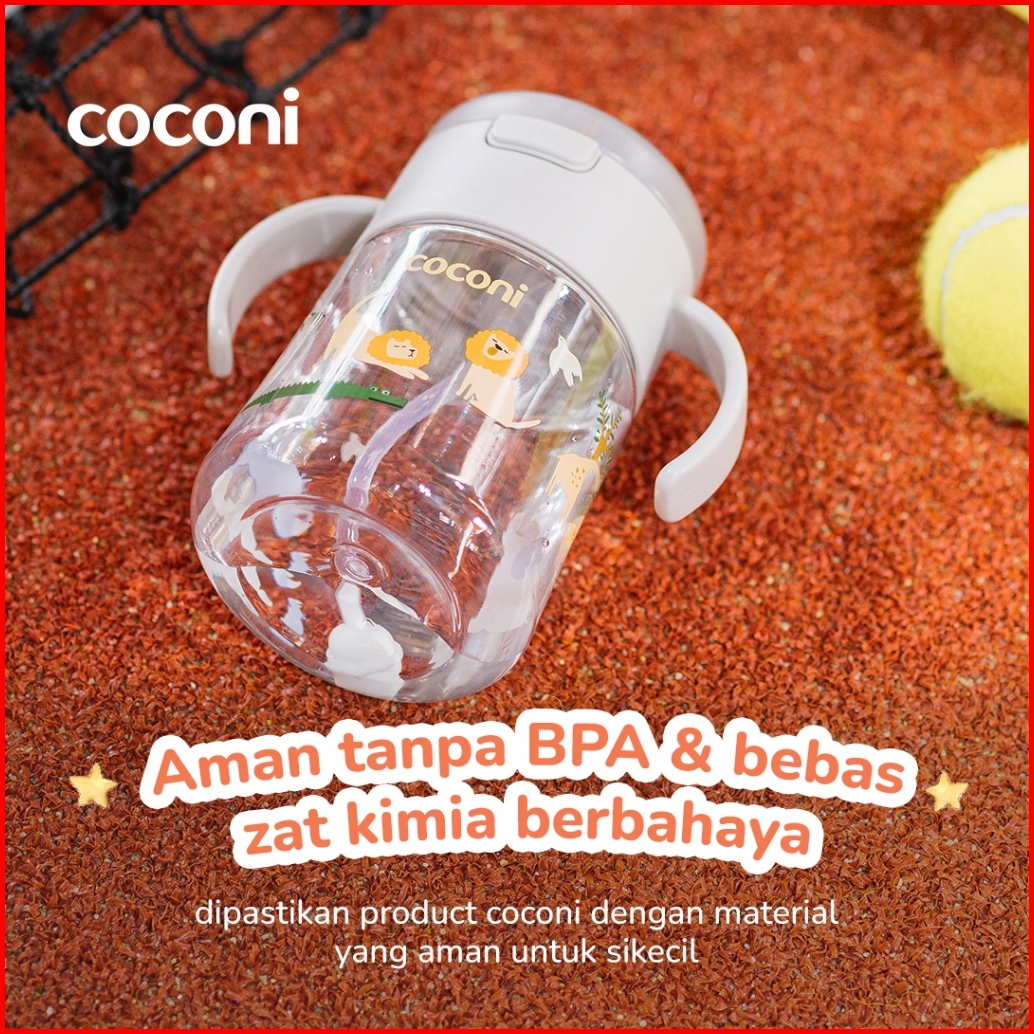 Coconi Sippy Bottle 280ml Botol Minum Bayi Dengan Sedotan Berat Tutup Anti Tumpah Bpa Free