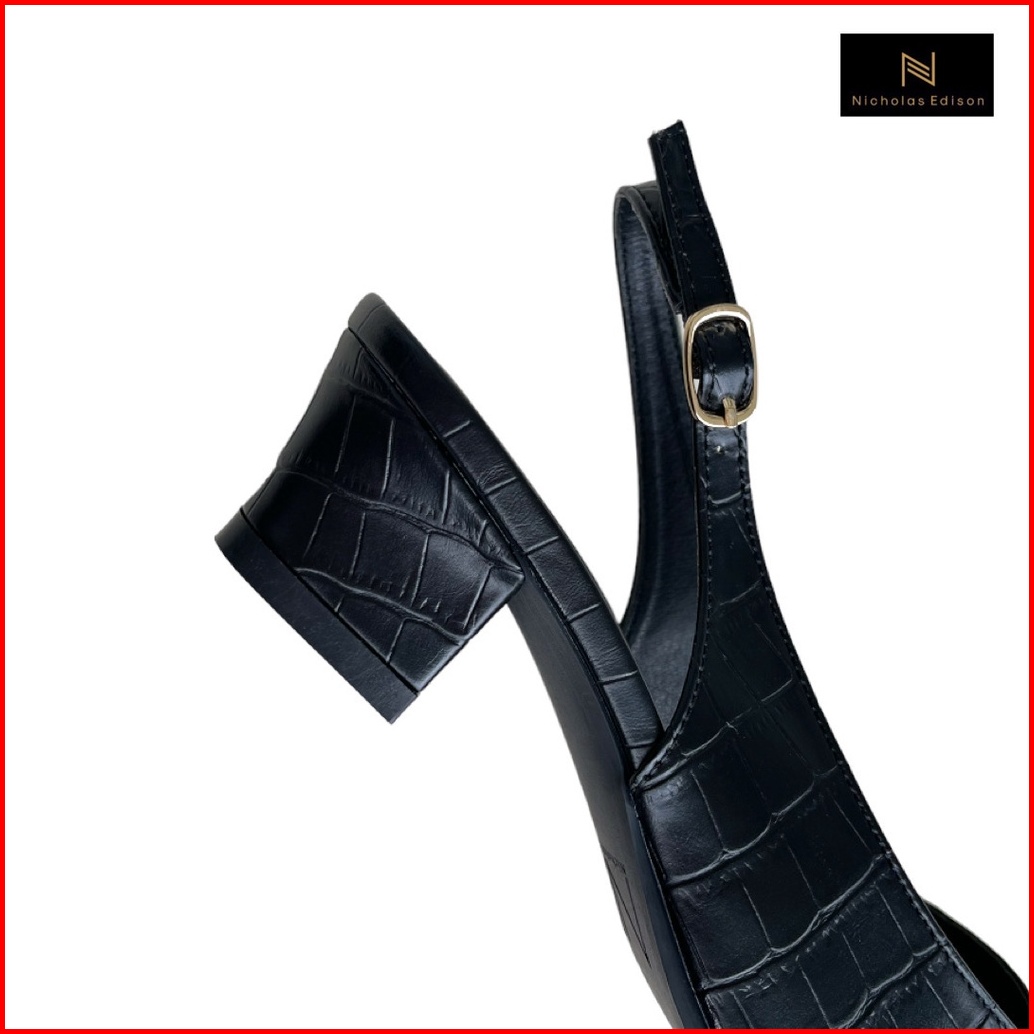 Nicholas Edison Sandal Heel Tara Black Sepatu Hak Tahu Pendek Terbaru