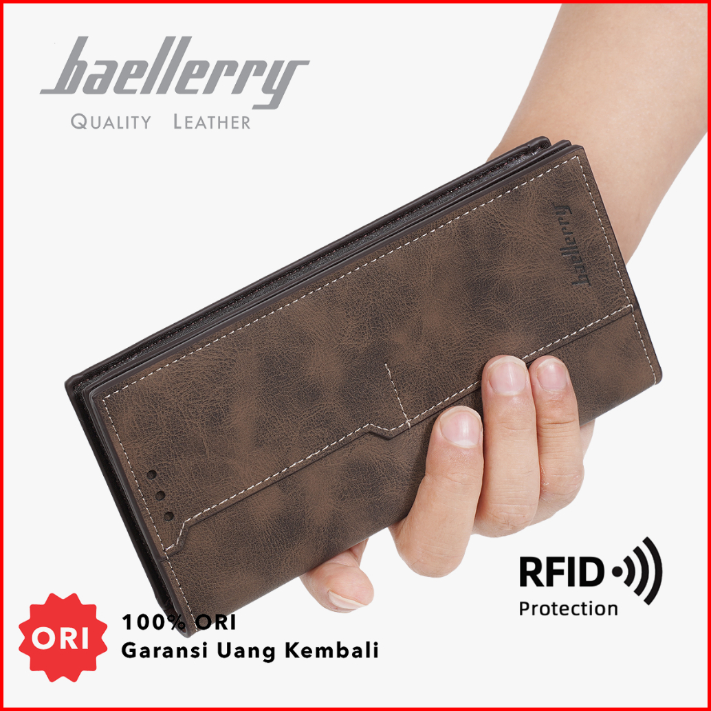 Baellerry C3160 Dompet Pria Panjang Rfid Protect Bahan Kulit Pu Leather Premium Baeos