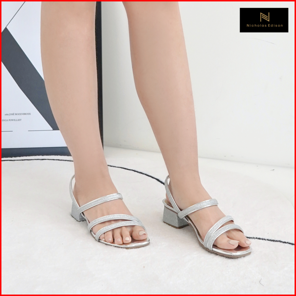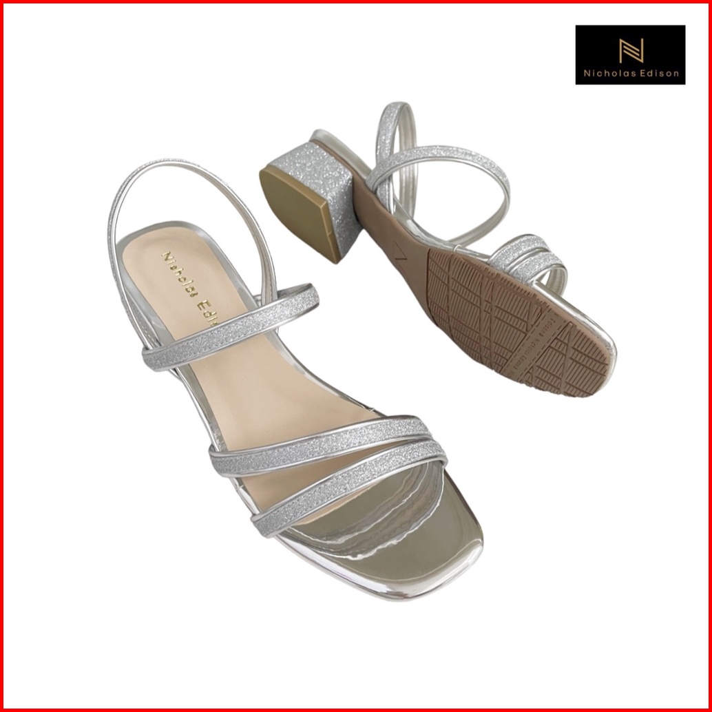 Nicholas Edison Heel Rana Silver Sandal Block Heels Glitter Terbaru