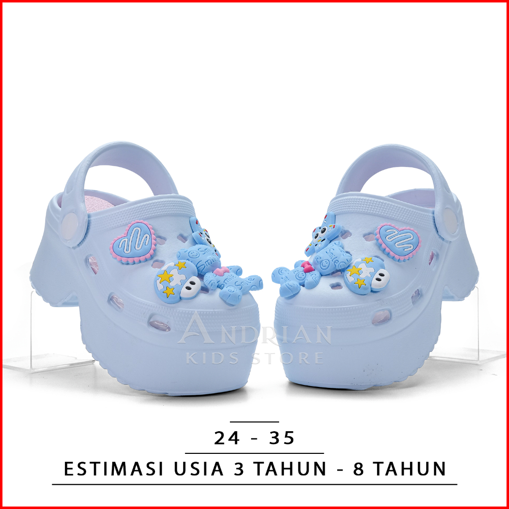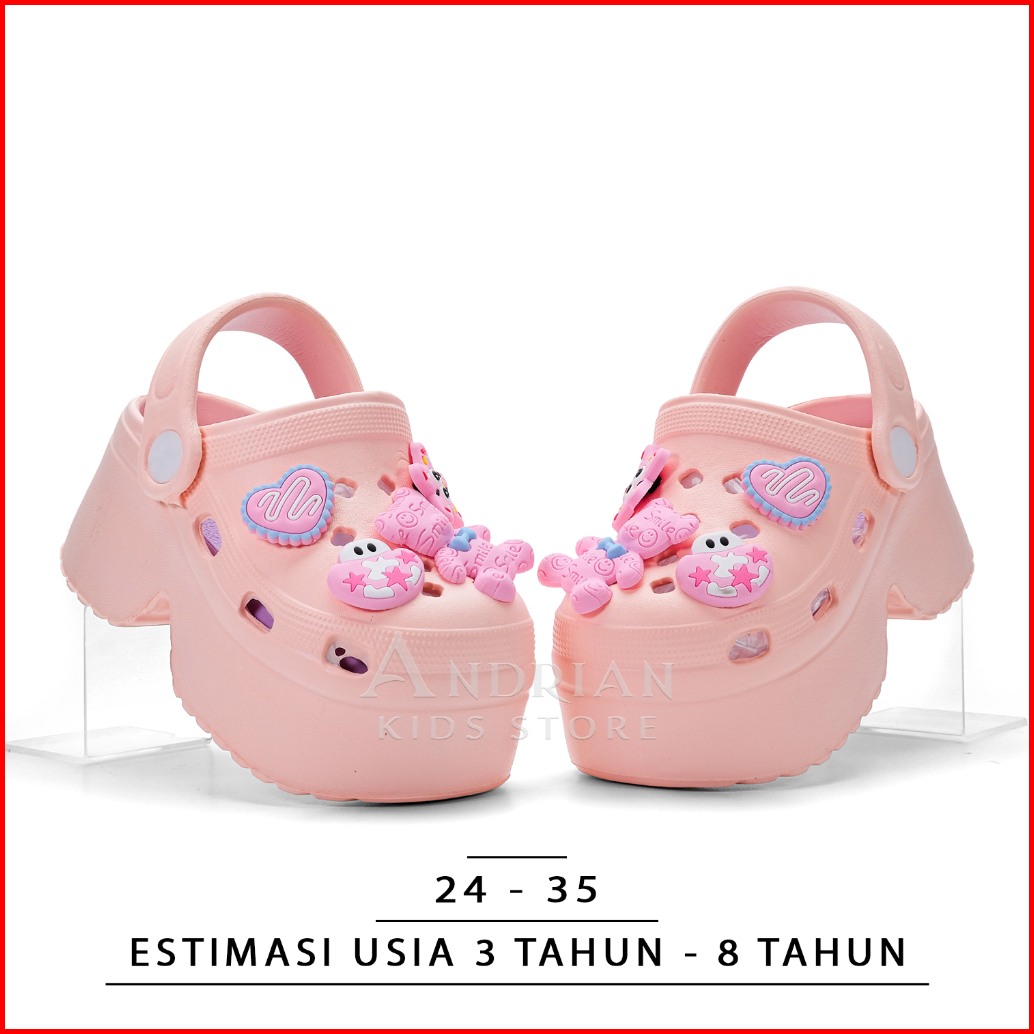 Qloud Walkerz - Sandal Clogs Anak Perempuan Platform Tinggi Sandal Baim Anak Korean Style Super Empuk 3-9 Tahun Andrian