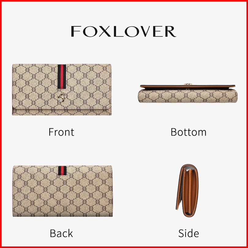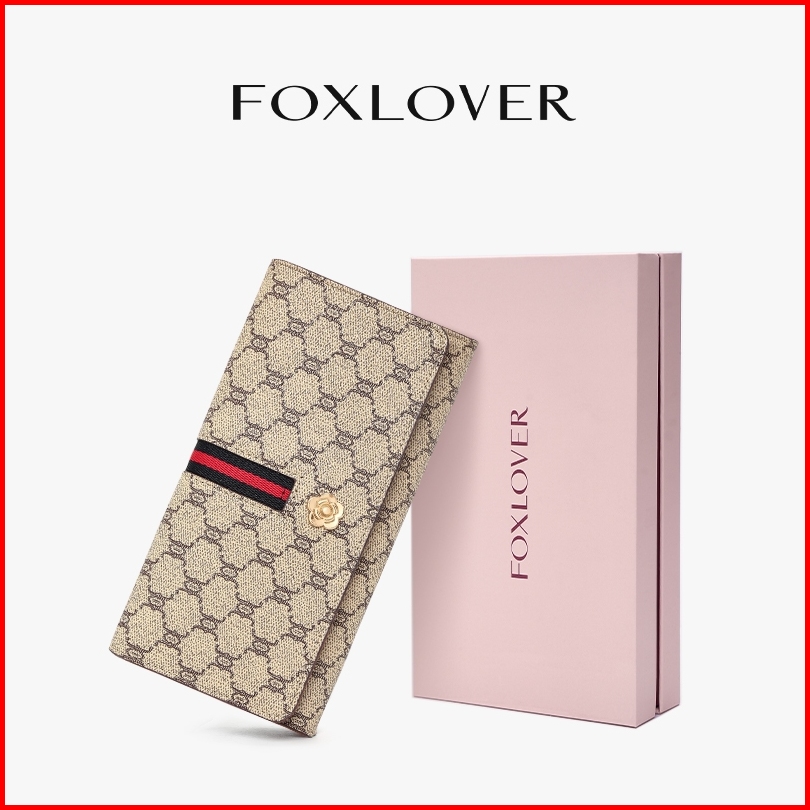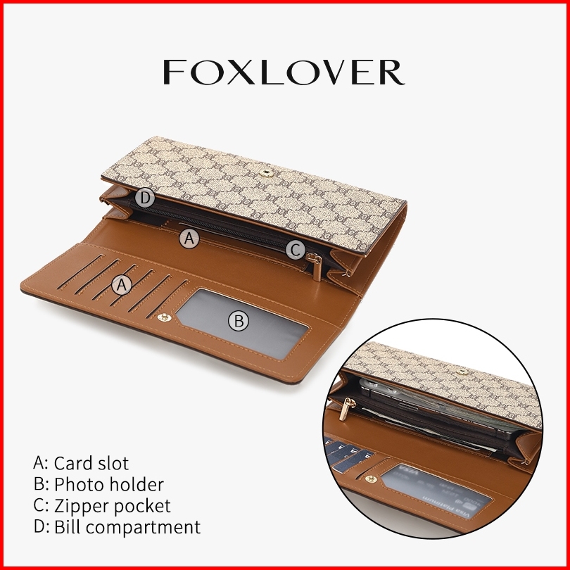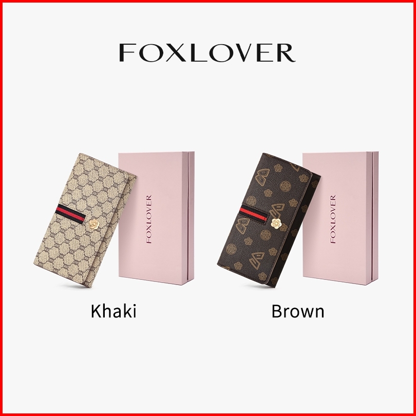 Foxlover Dompet Wanita Panjang Pola Klasik Stylish Banyak Slot Kartu Khaki Cokelat