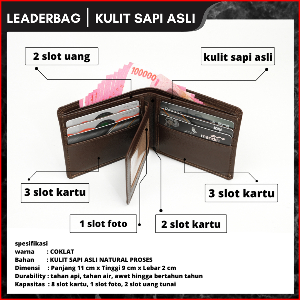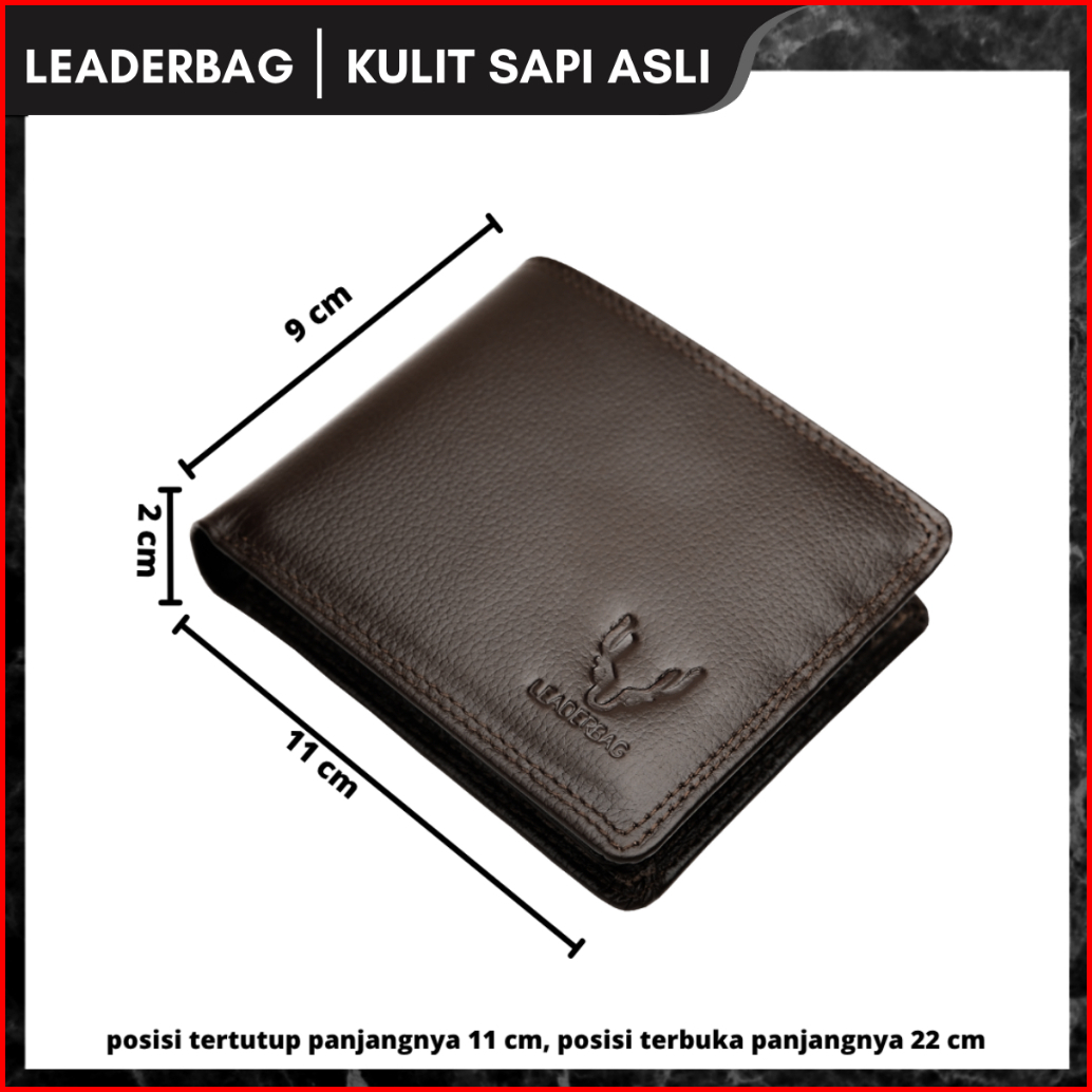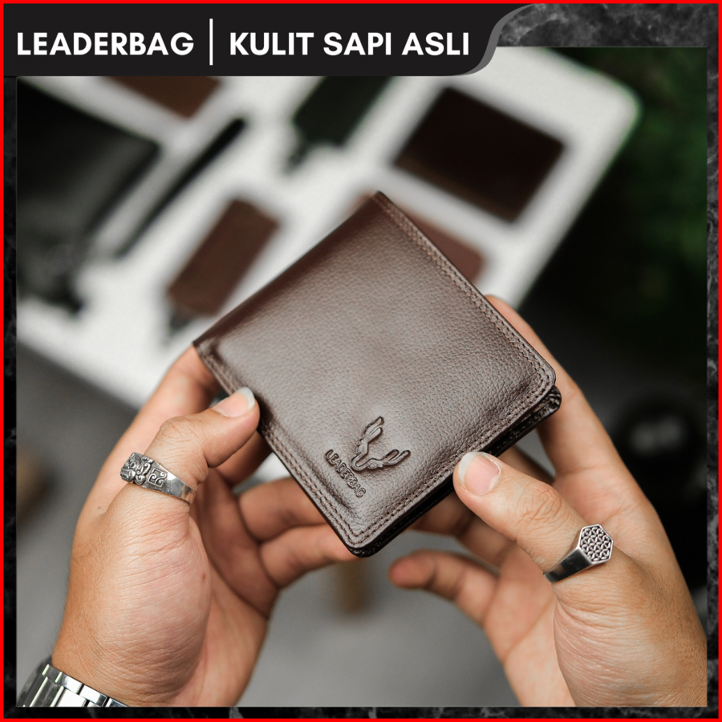 Leaderbag Dompet Pendek Pria Kulit Sapi Asli Warna Coklat Premium Walet Lipat Branded Elegan Terbaru
