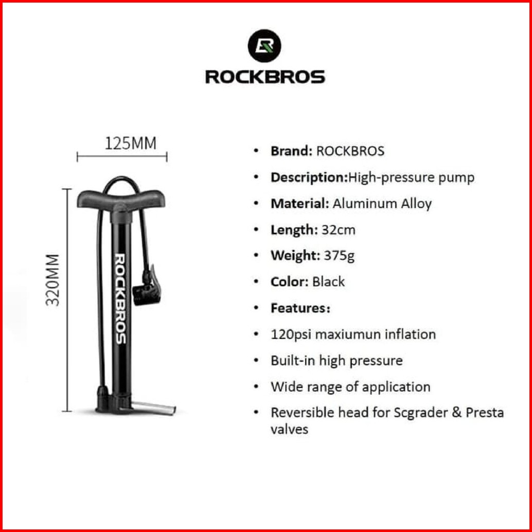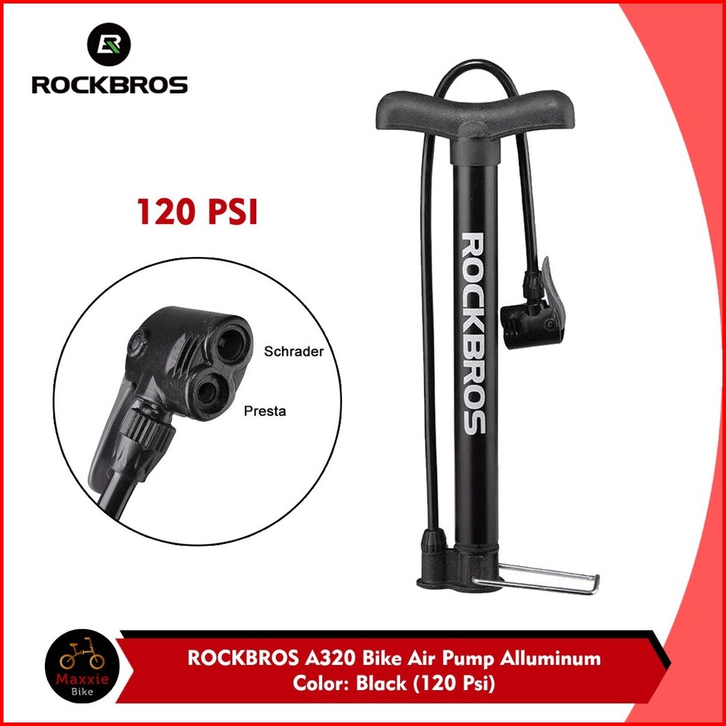 Pompa Sepeda Rockbros A320 120 Psi Bicycle Pump Bola Motor Pentil Presta Schrader Aluminium Alloy