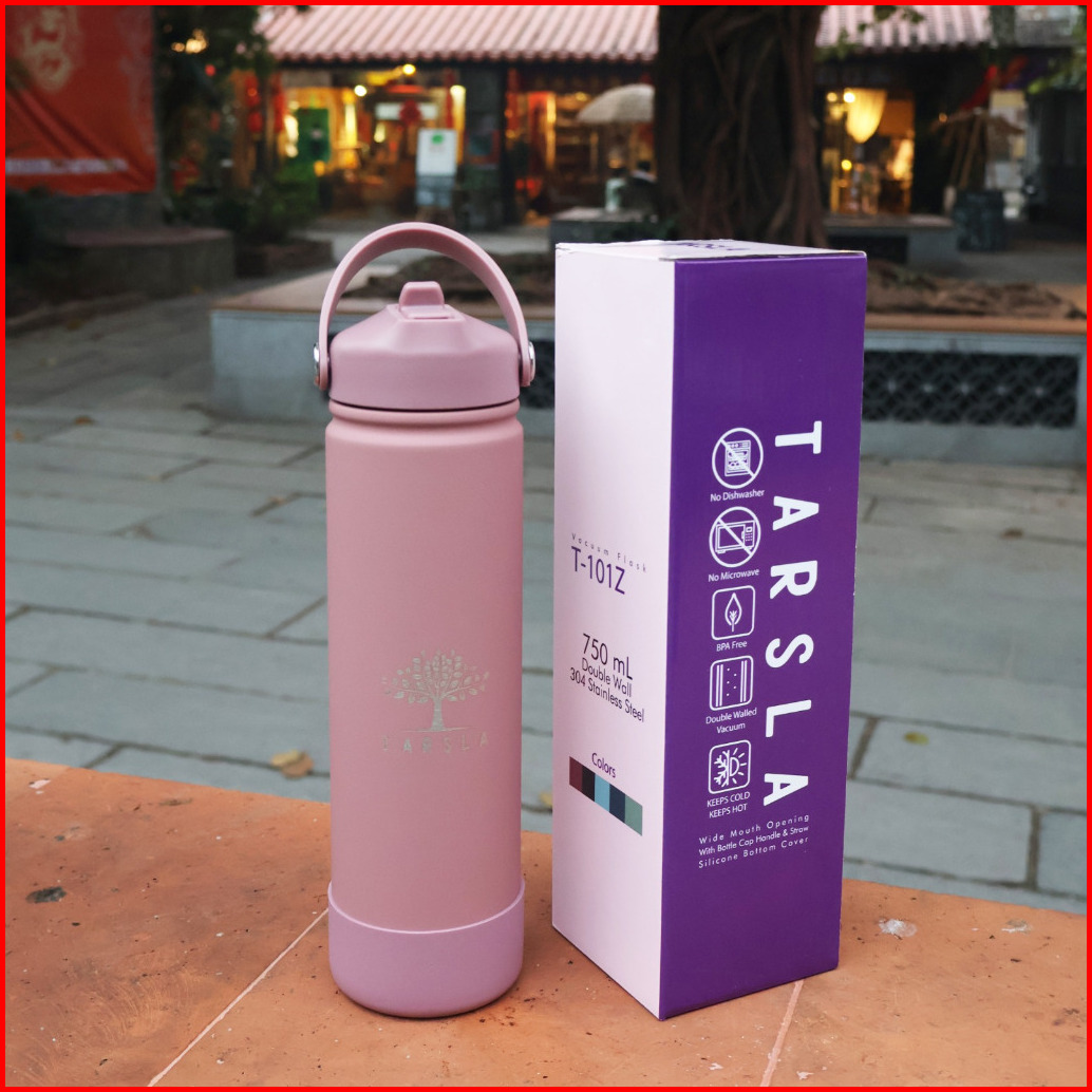 Botol Tumbler Stainless T-101z Termos Vacuum Flask Hot Cold Include Sedotan 750ml