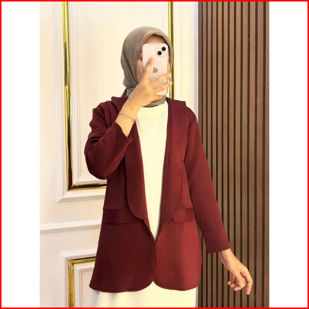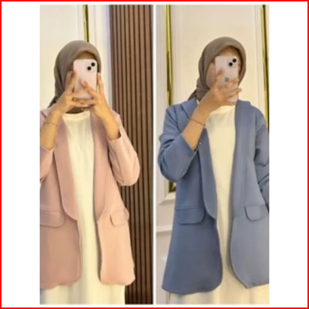 Blazer Wanita Panjang Kerah Lurus Tanpa Kancing Scuba Premium