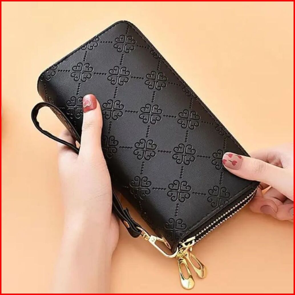 Dompet Embos Bunga-dompet Panjang Dompett Wanita Risleting 2 Dompet Kartu Uang Hp Terbaru