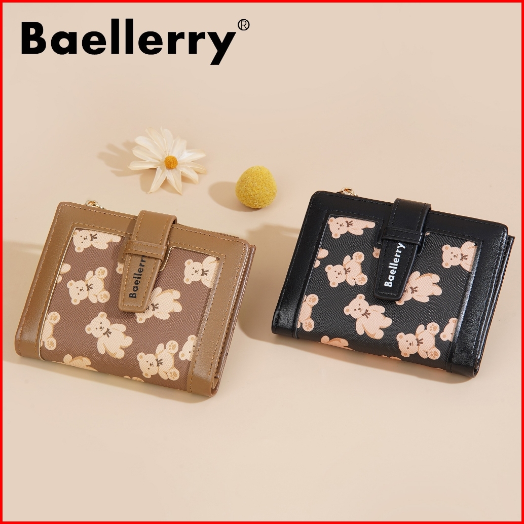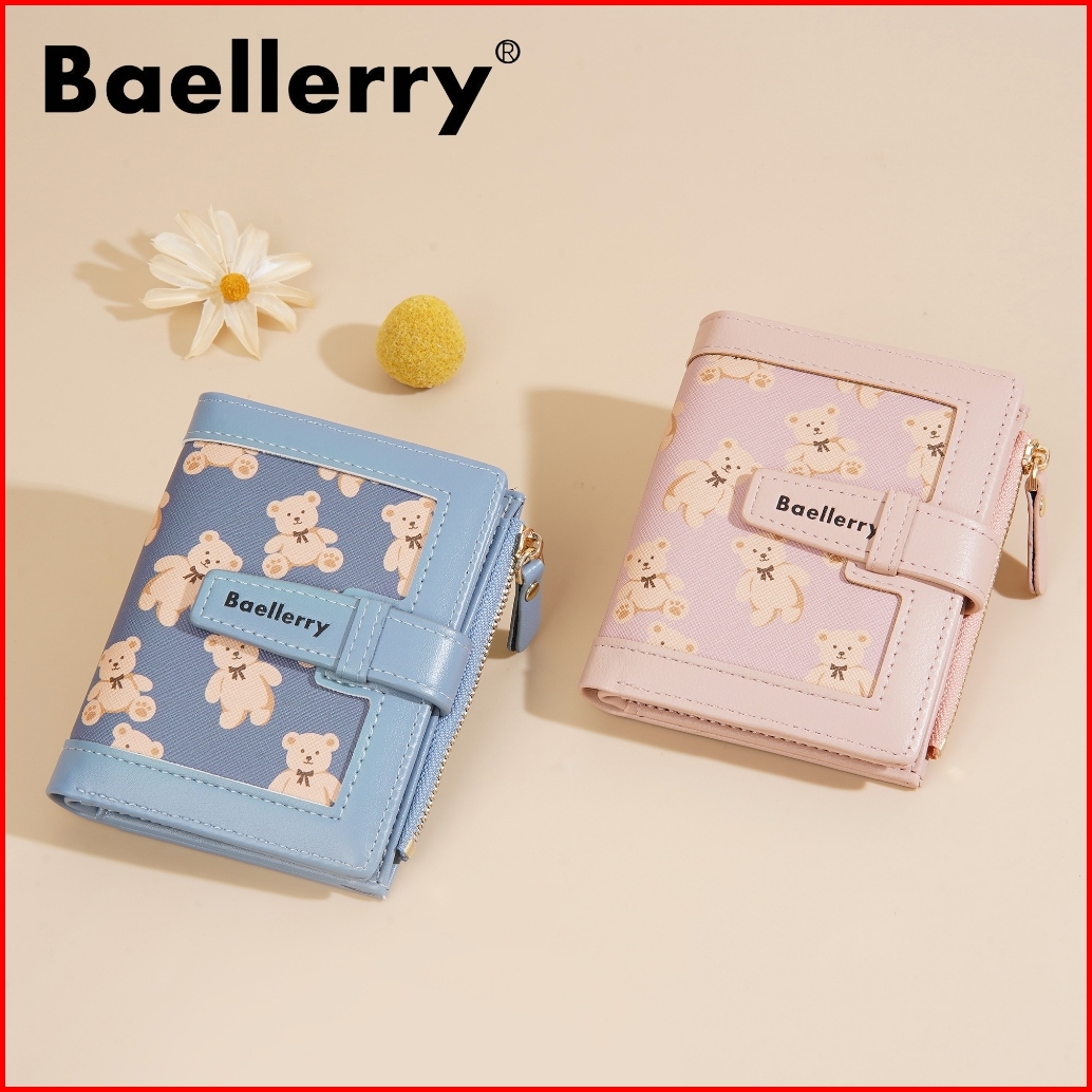 Baellerry N1925 Dompet Wanita Kecil Motif Teddy Bear Bahan Kulit Pu Leather Premium Baeos