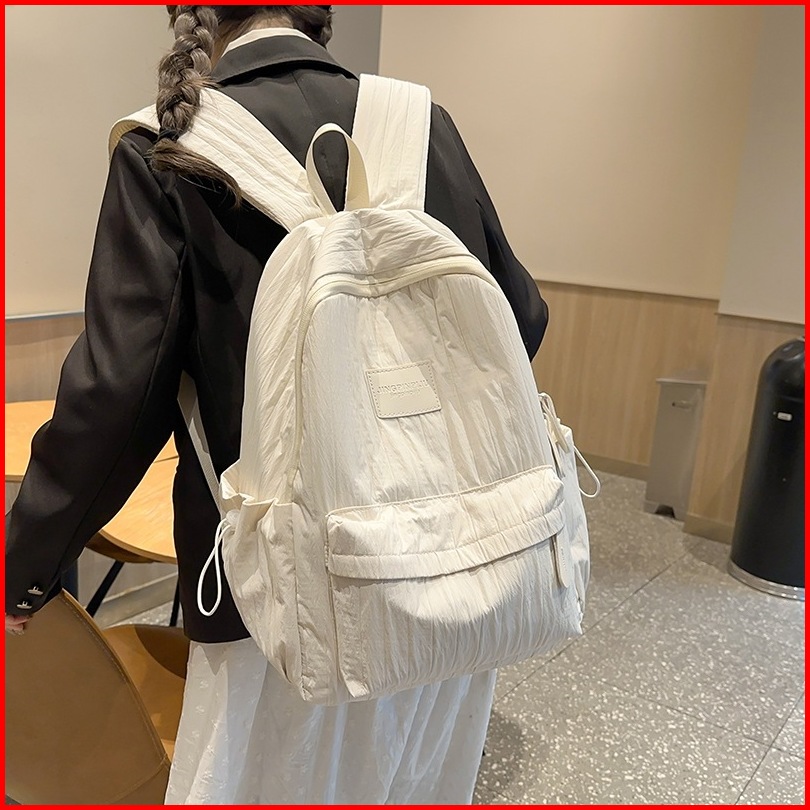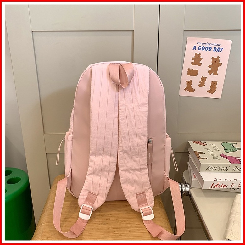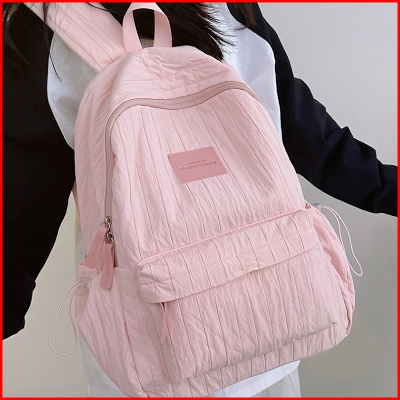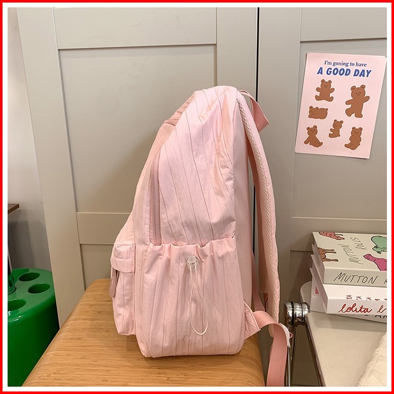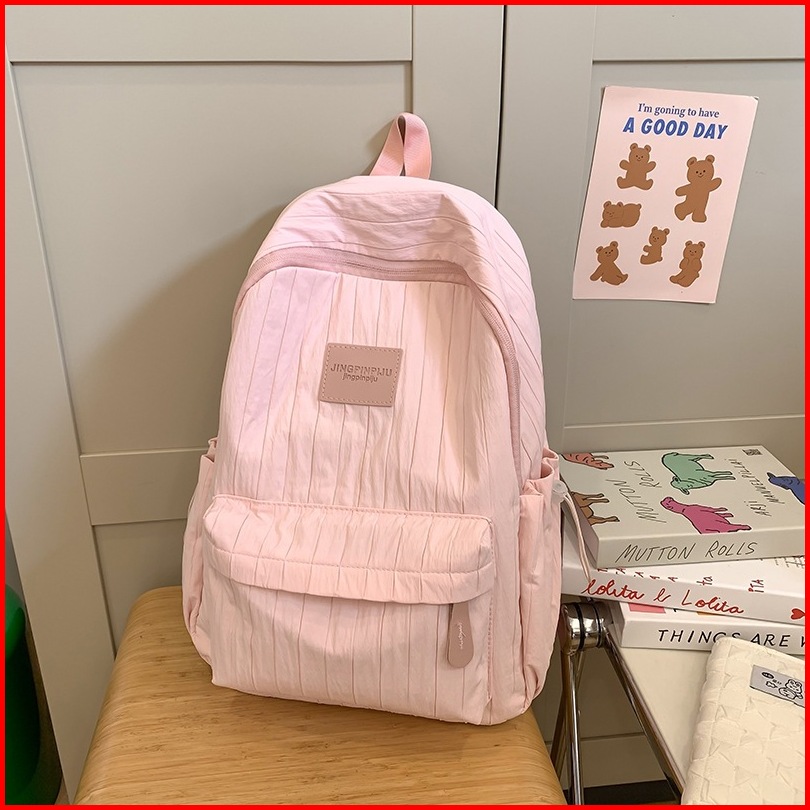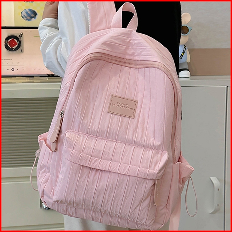 Ht-tas Ransel Santai Wanita Tas Sekolah Remaja Tas Laptop Tas Nilon Bergaris Kapasitas Besar